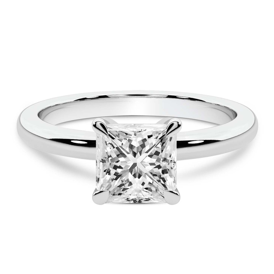 This Daisy Leaf Petal Solitaire Lab Diamond Ring is a Asscher shape ring Engagement type pt White Gold
