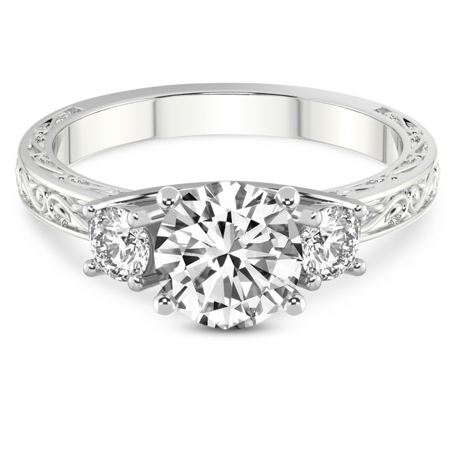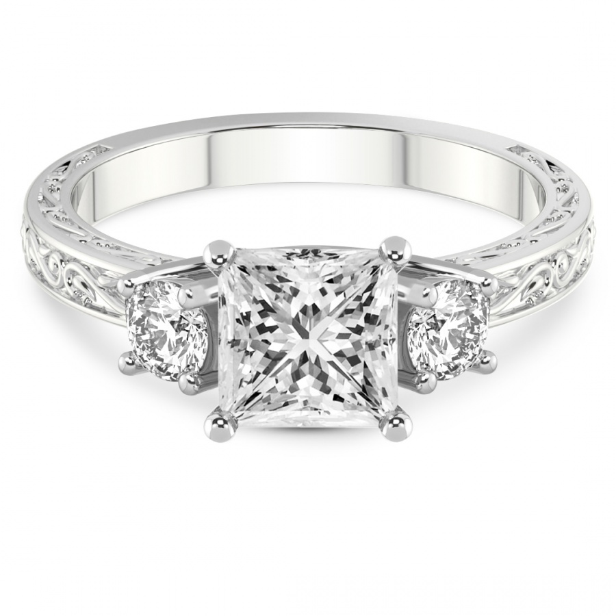 This Eloise Three Stone Felicity Lab Diamond Ring is a Asscher shape ring Engagement type pt White Gold