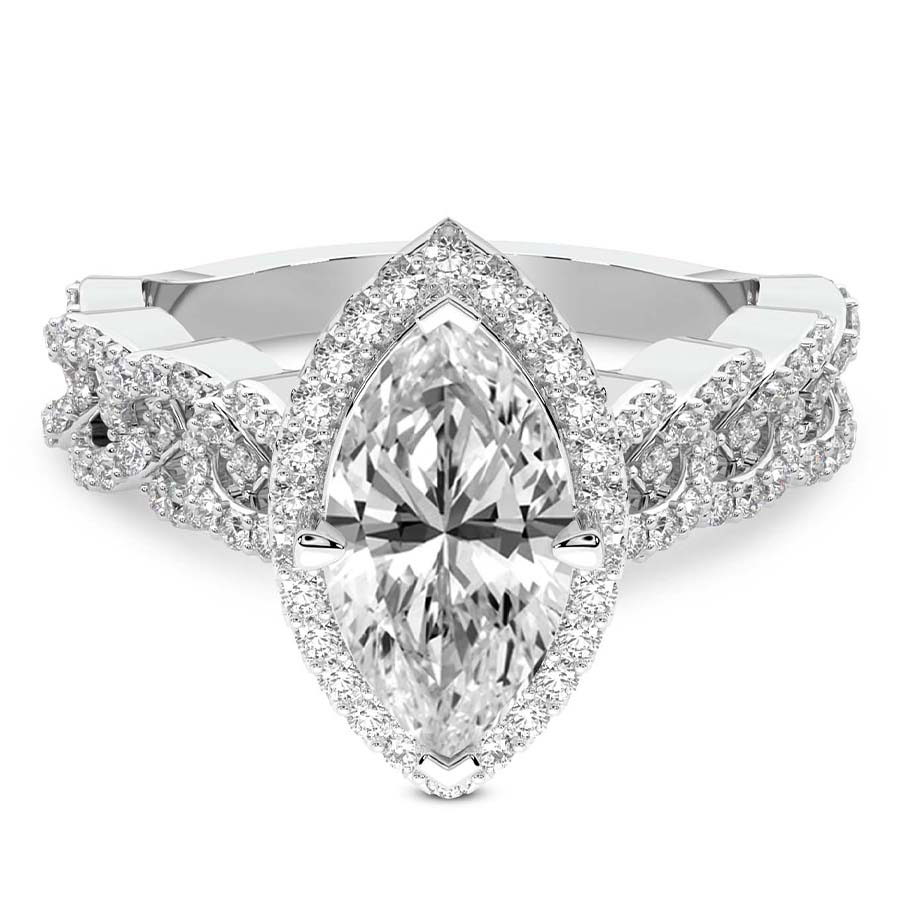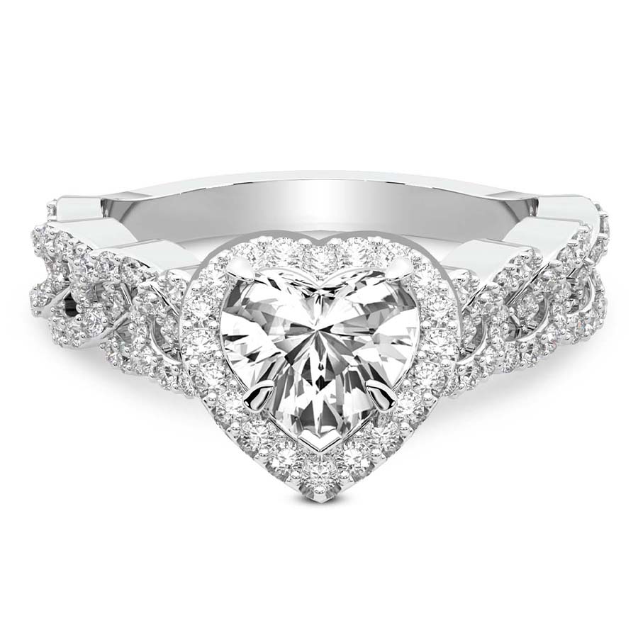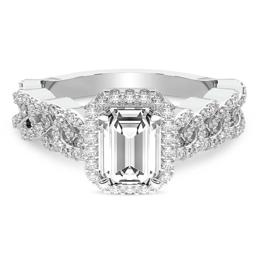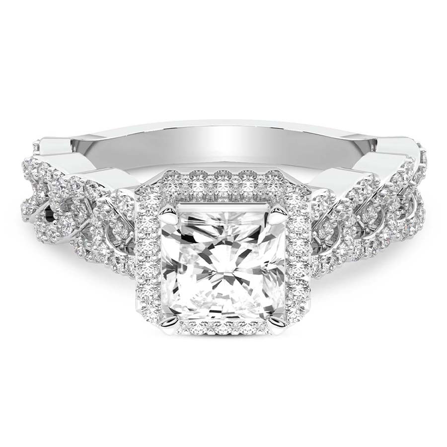 This Serenity Halo Celtic Knot Lab Diamond Ring is a Asscher shape ring Engagement type pt White Gold