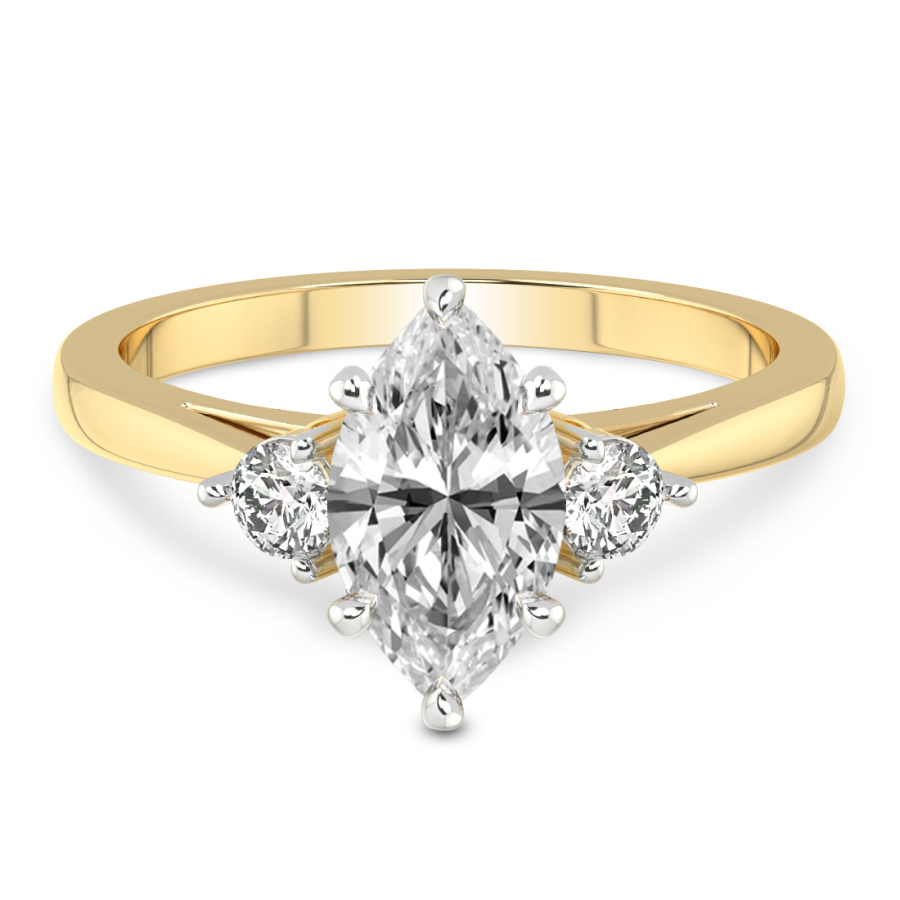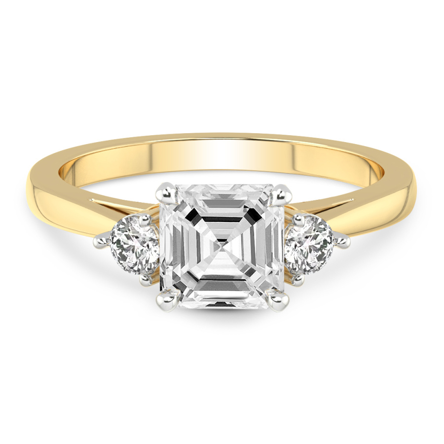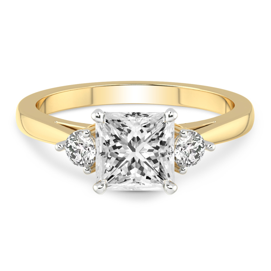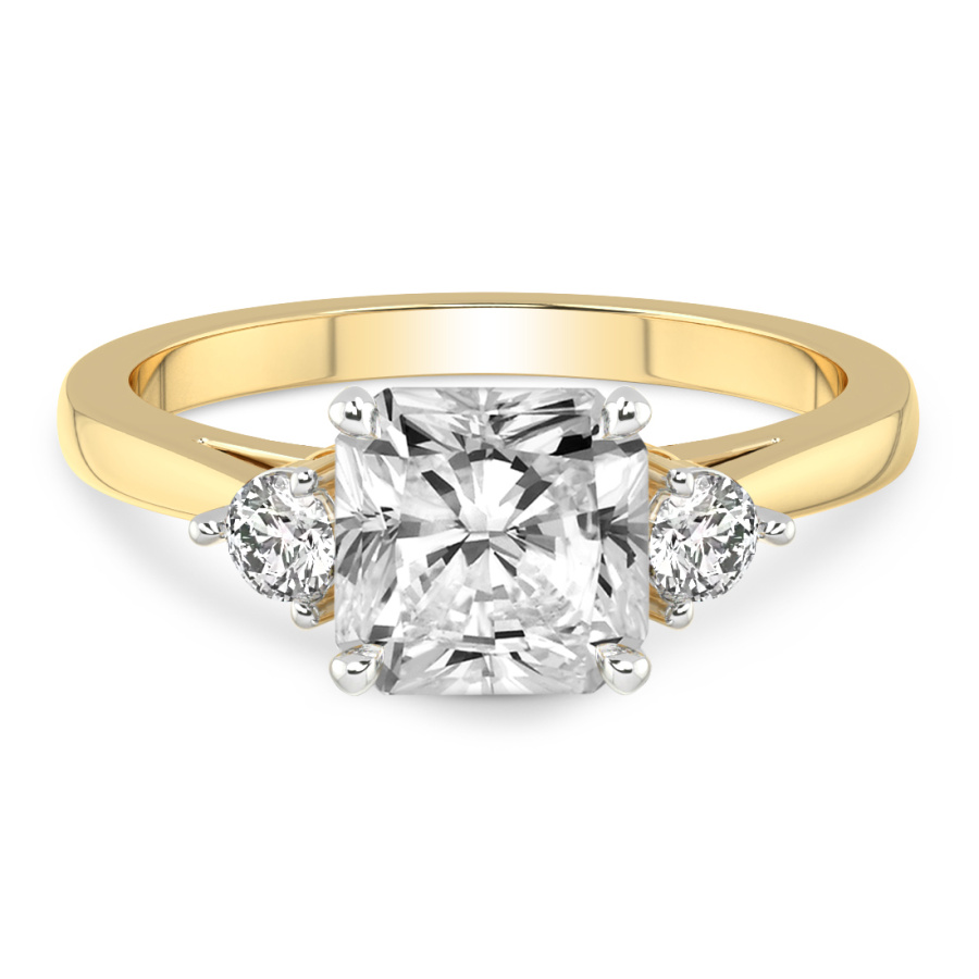 This Zoe Three Stone Diamond Ring is a Cushion shape ring Engagement type 18k Yellow Gold