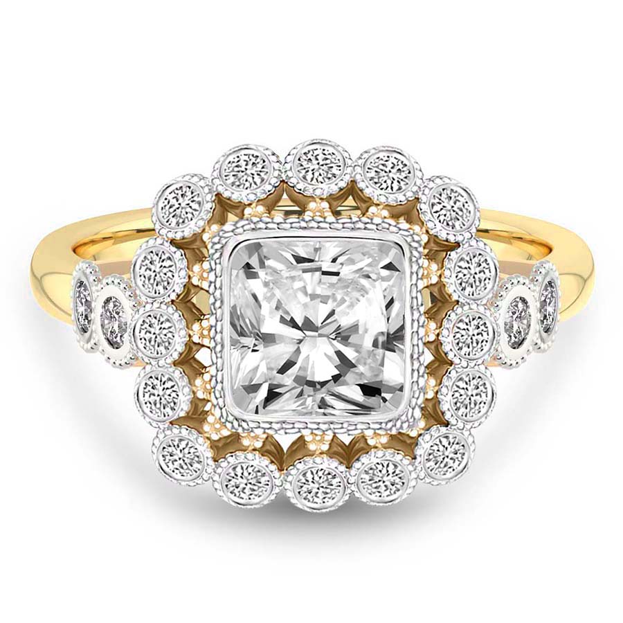 This Talia Felicity Halo Diamond Ring is a Emerald shape ring Engagement type 18k Yellow Gold