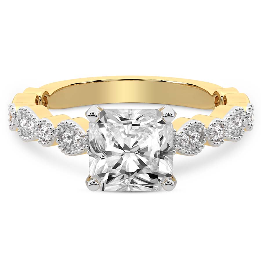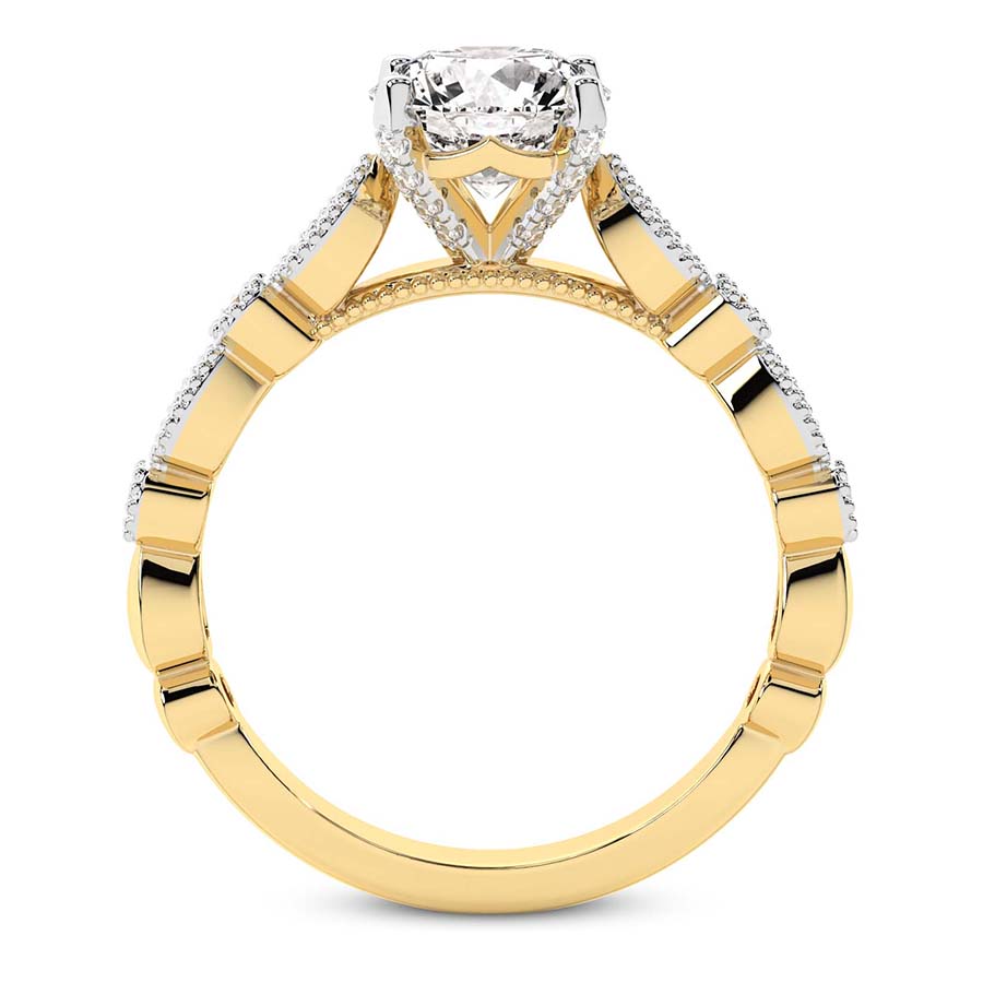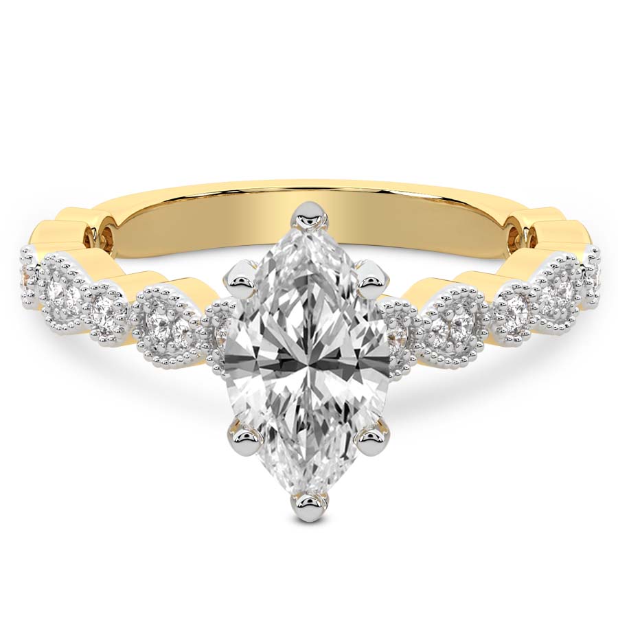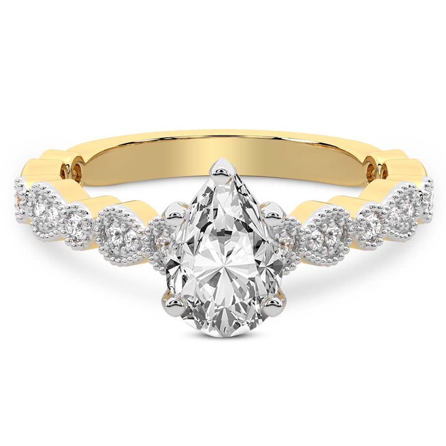 This Renée Milgrain Diamond Ring is a Heart shape ring Engagement type 18k Yellow Gold