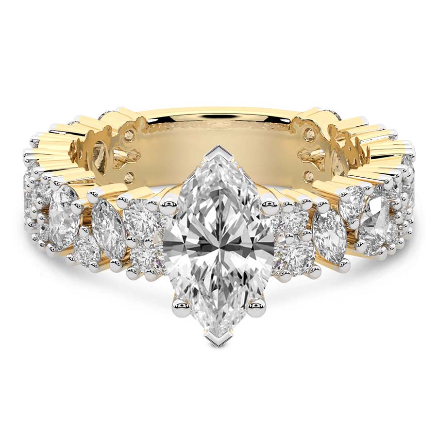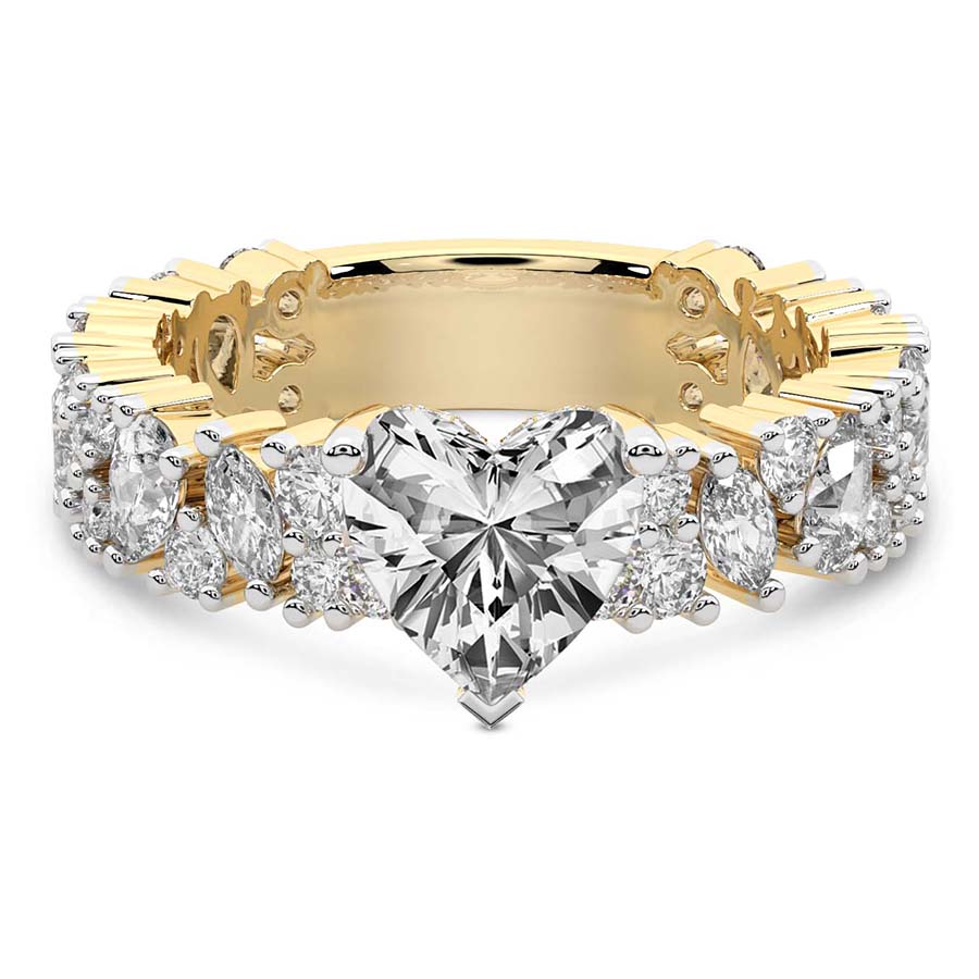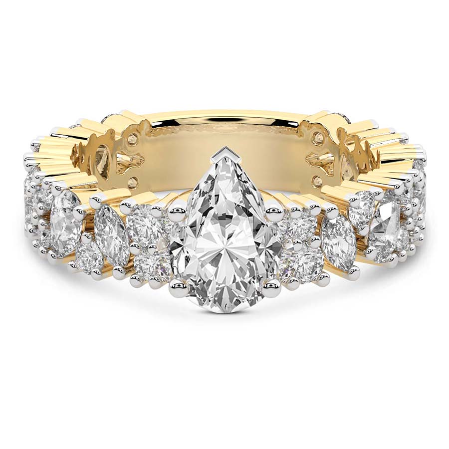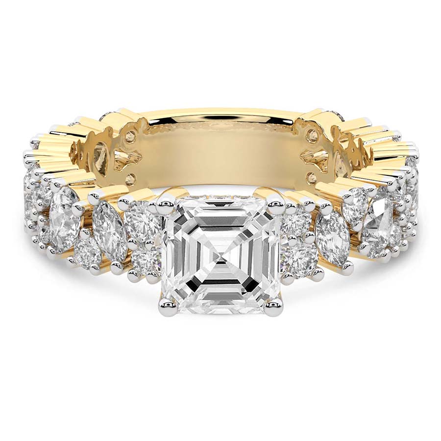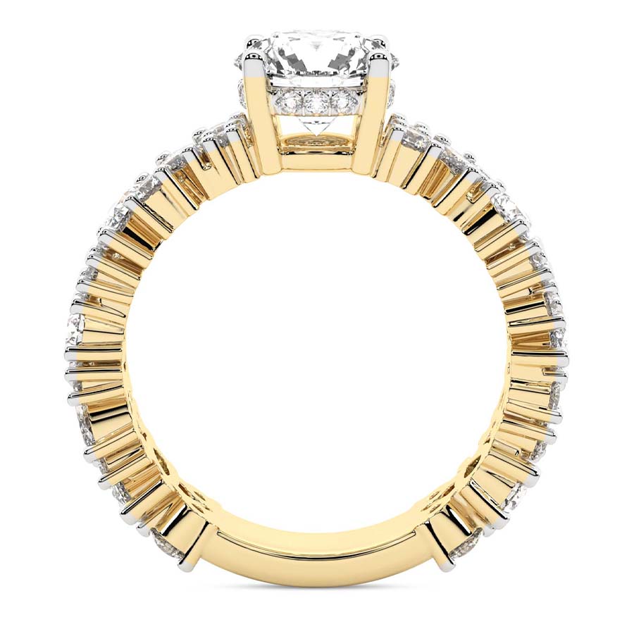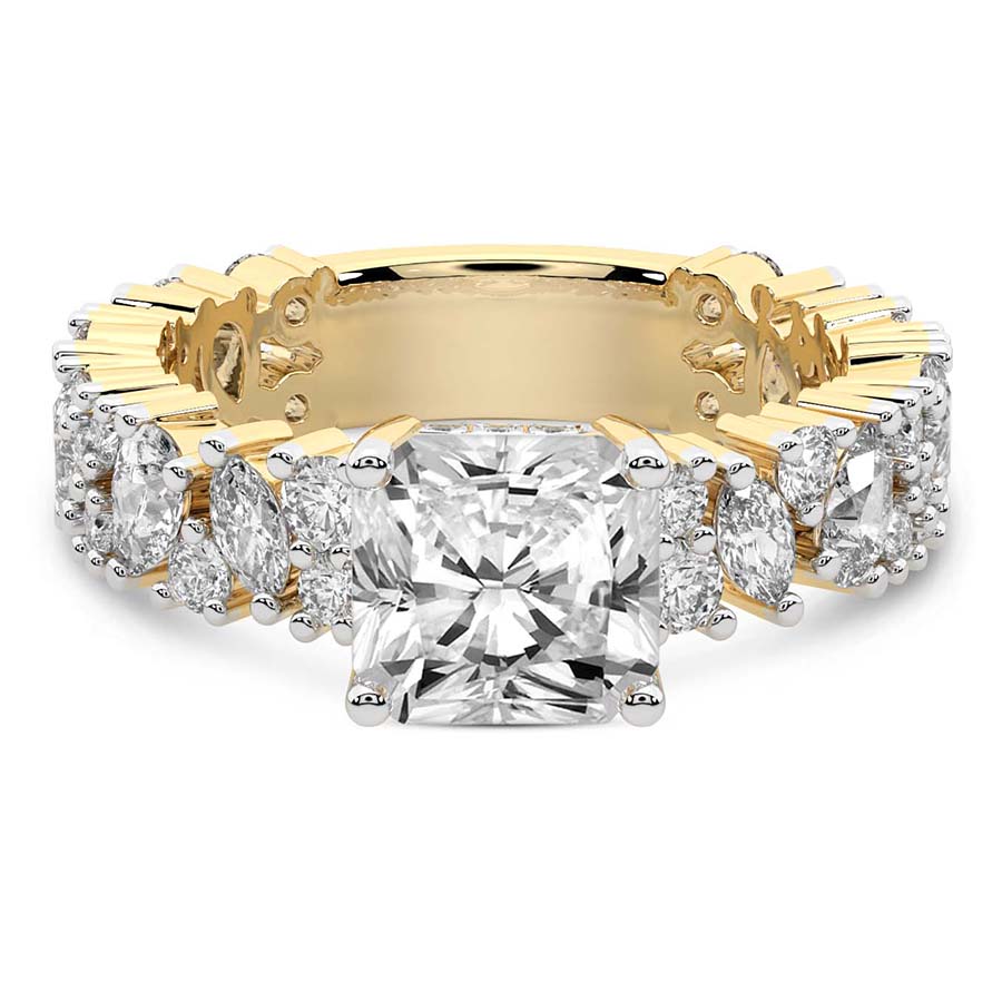 This Zoé Side Stone Encrusted Ring is a Princess shape ring Engagement type 18k Yellow Gold