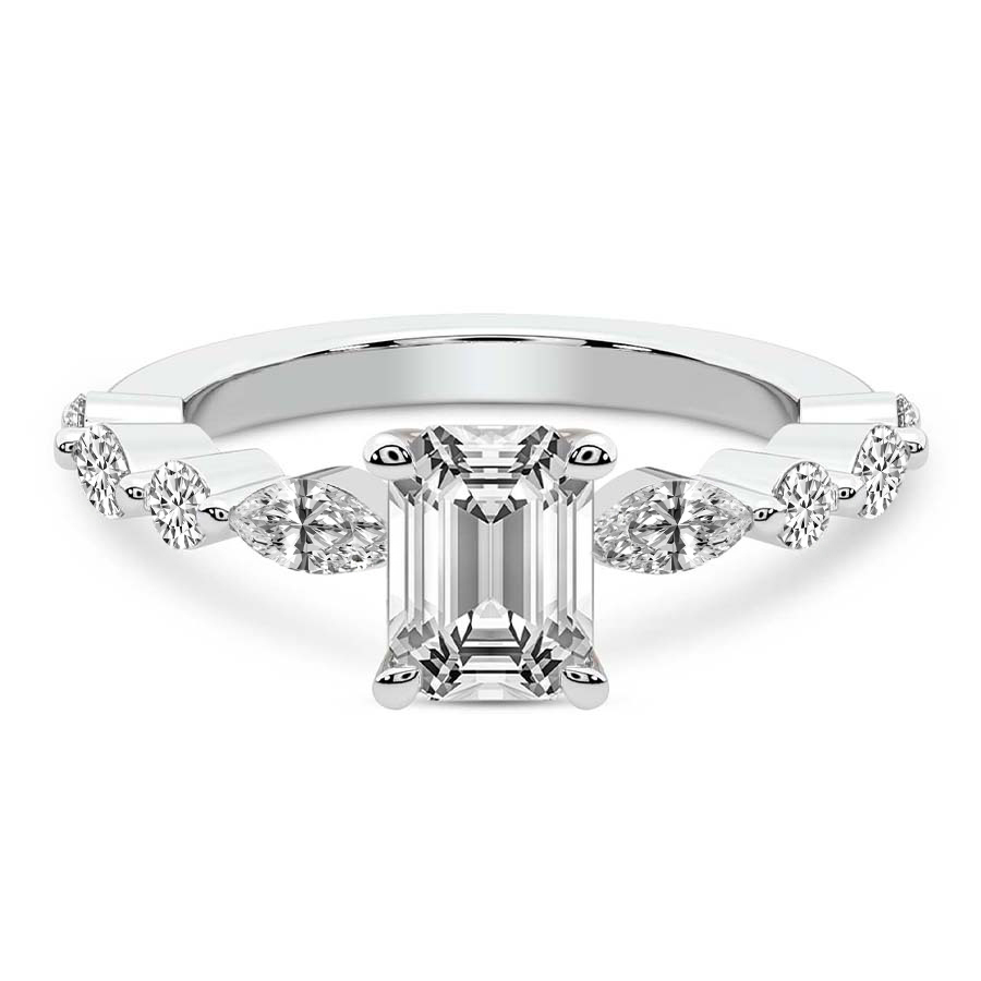 This Eliza Eternity Side Stone Ring is a Princess shape ring Engagement type pt Platinum