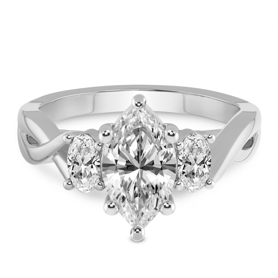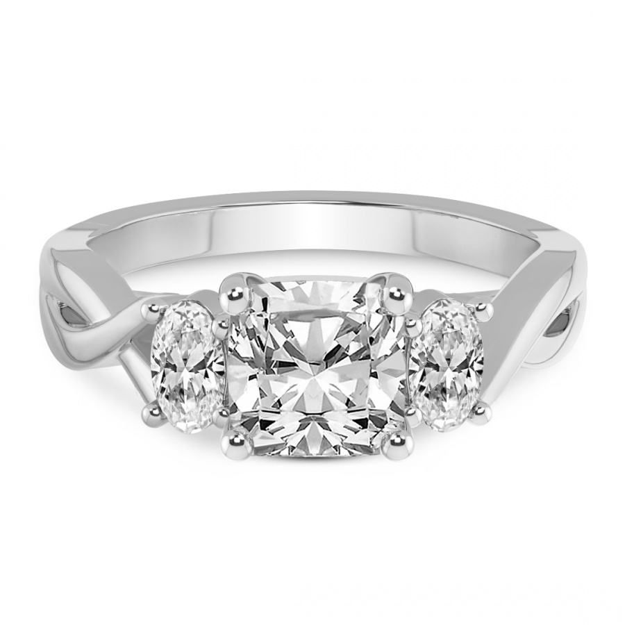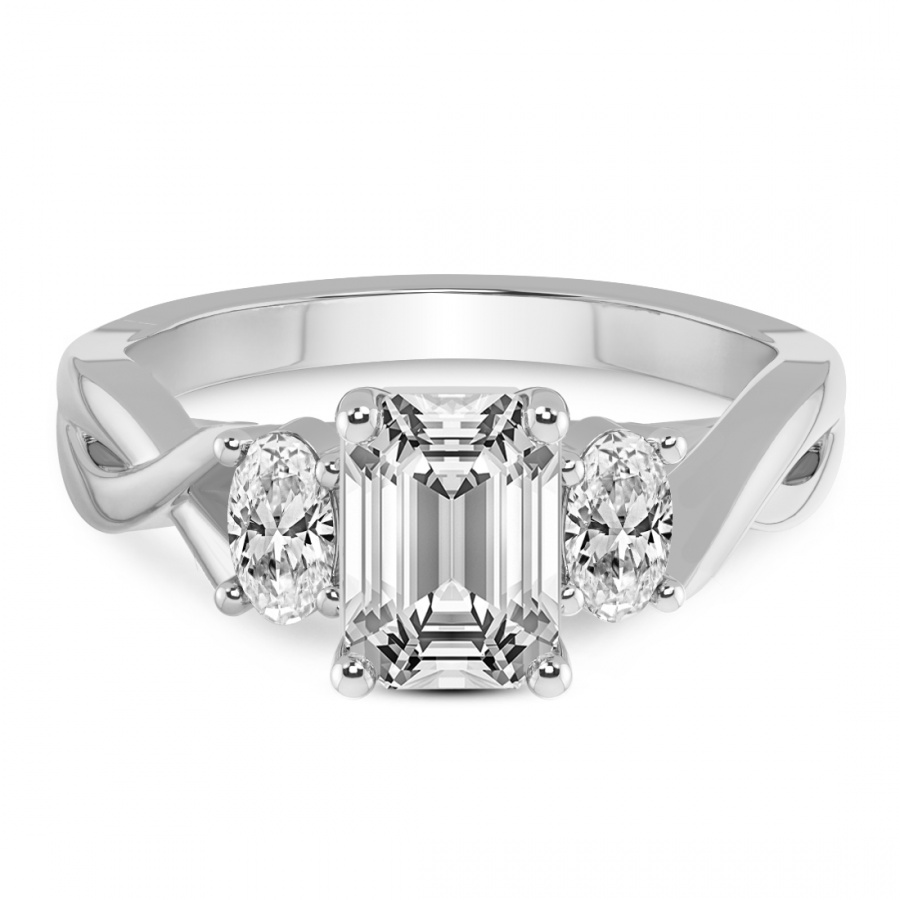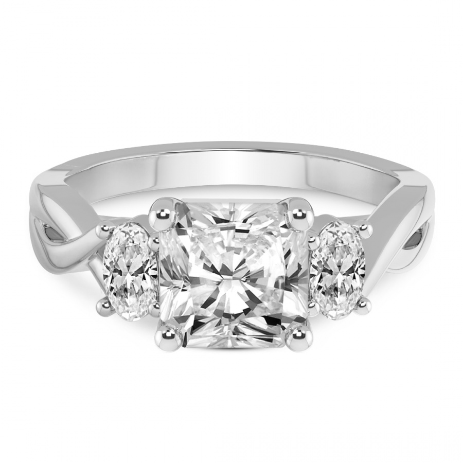 This Noorie Three Stone Side Oval Diamond Ring is a Princess shape ring Engagement type pt Platinum