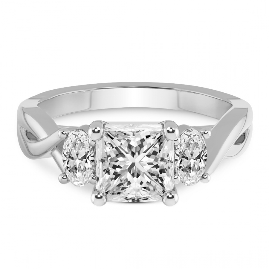 This Famie Three Stone Side Oval Diamond Ring is a Princess shape ring Engagement type pt Platinum