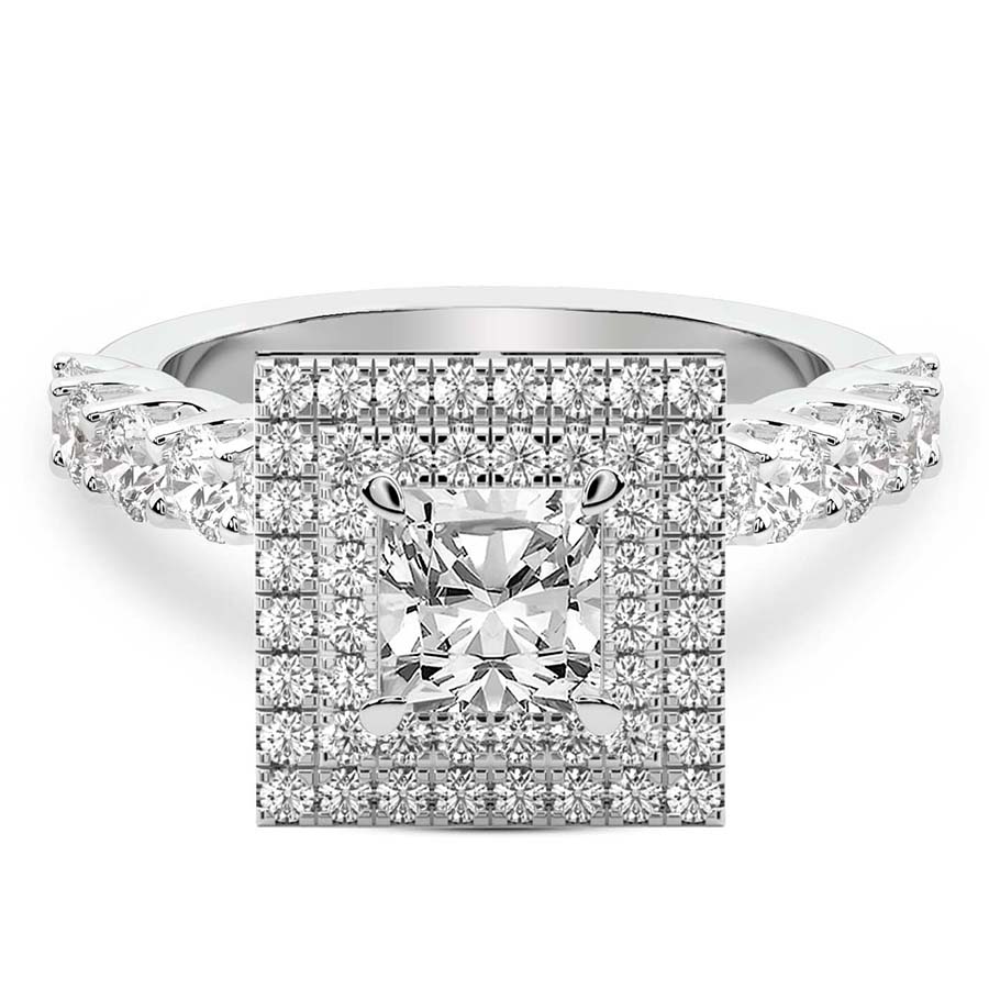 This Yvette Cresta Double Halo Diamond Ring is a Cushion shape ring Engagement type pt Platinum