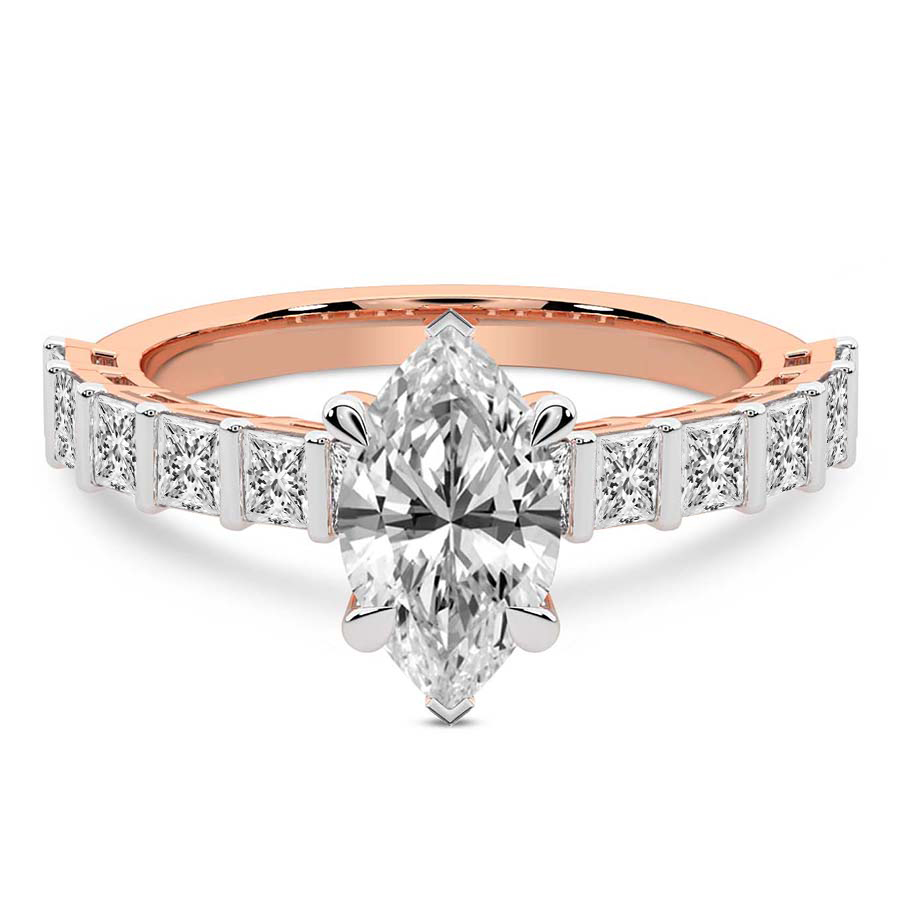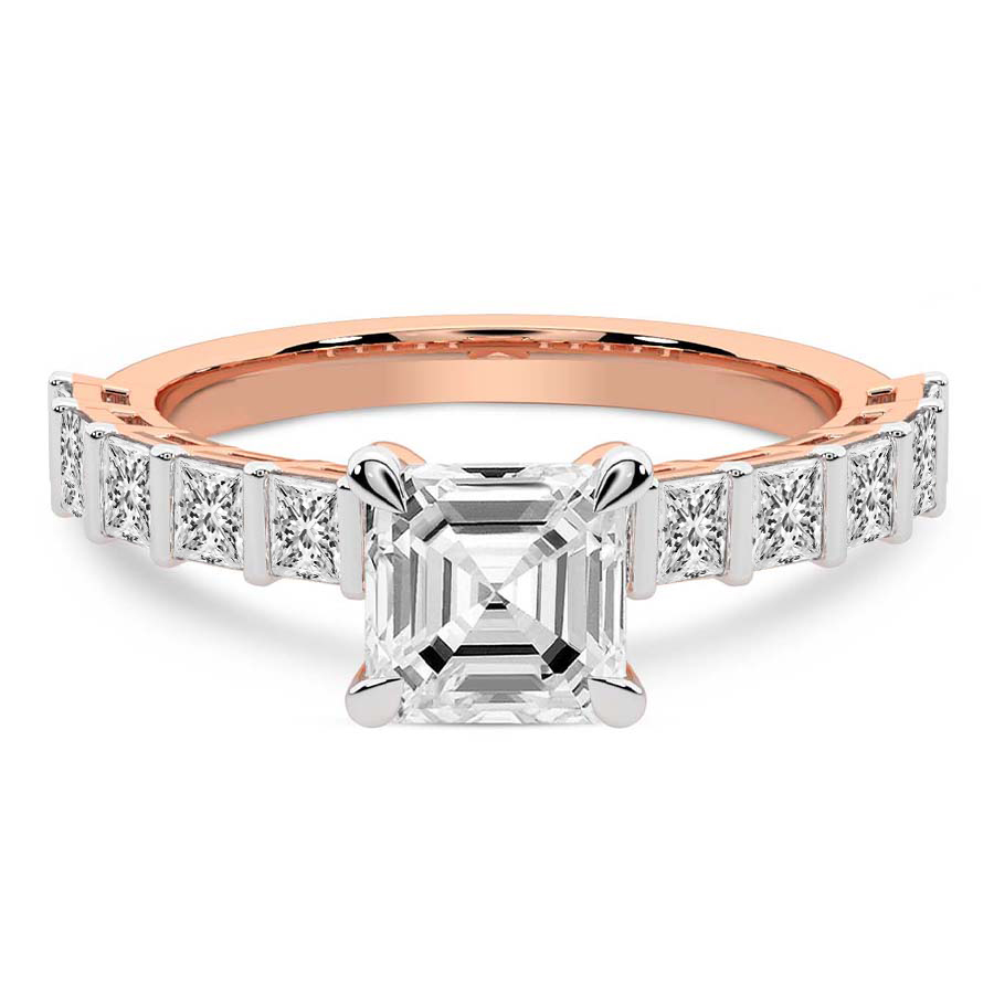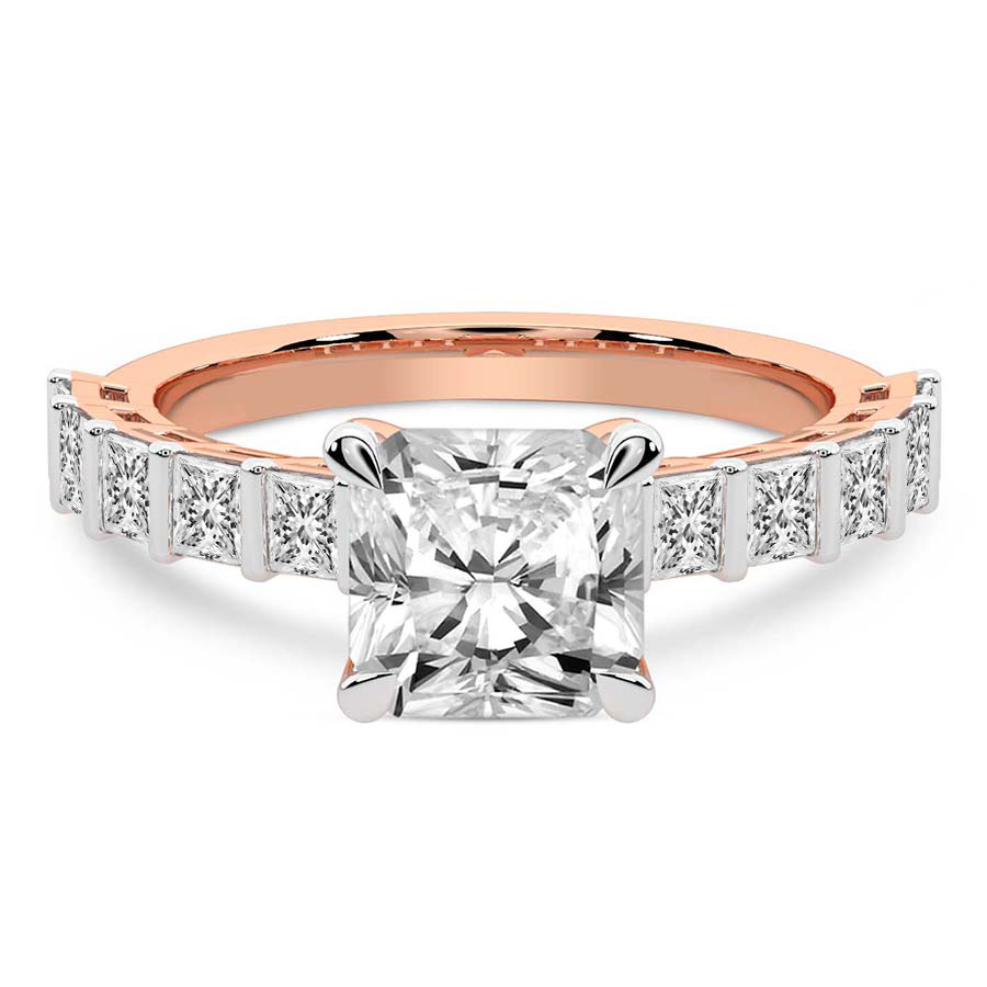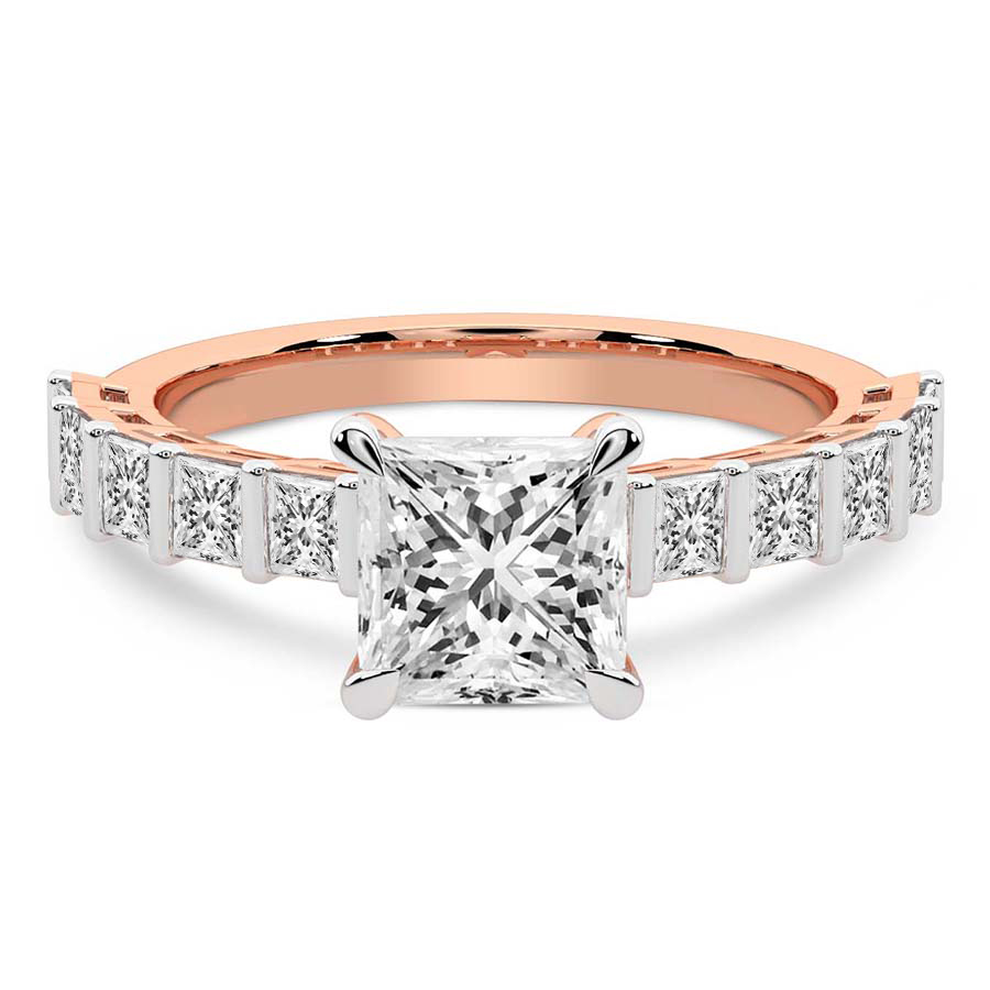 This Brigitte Side Stone Princess Ring is a Round shape ring Engagement type 18k Rose Gold