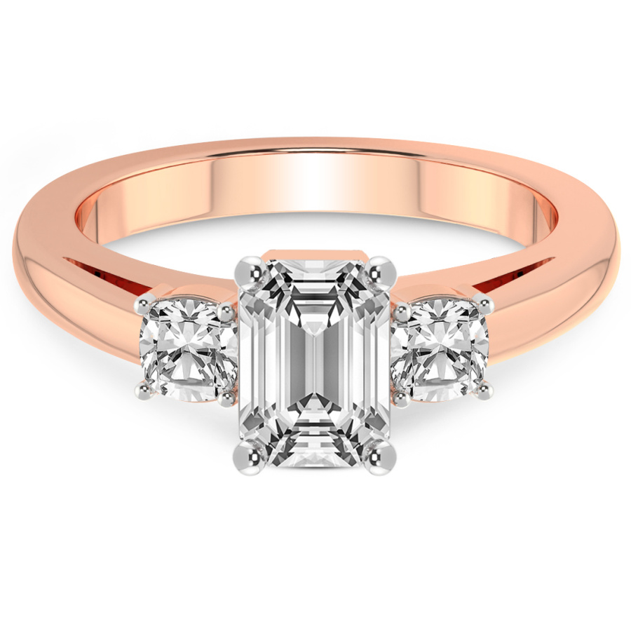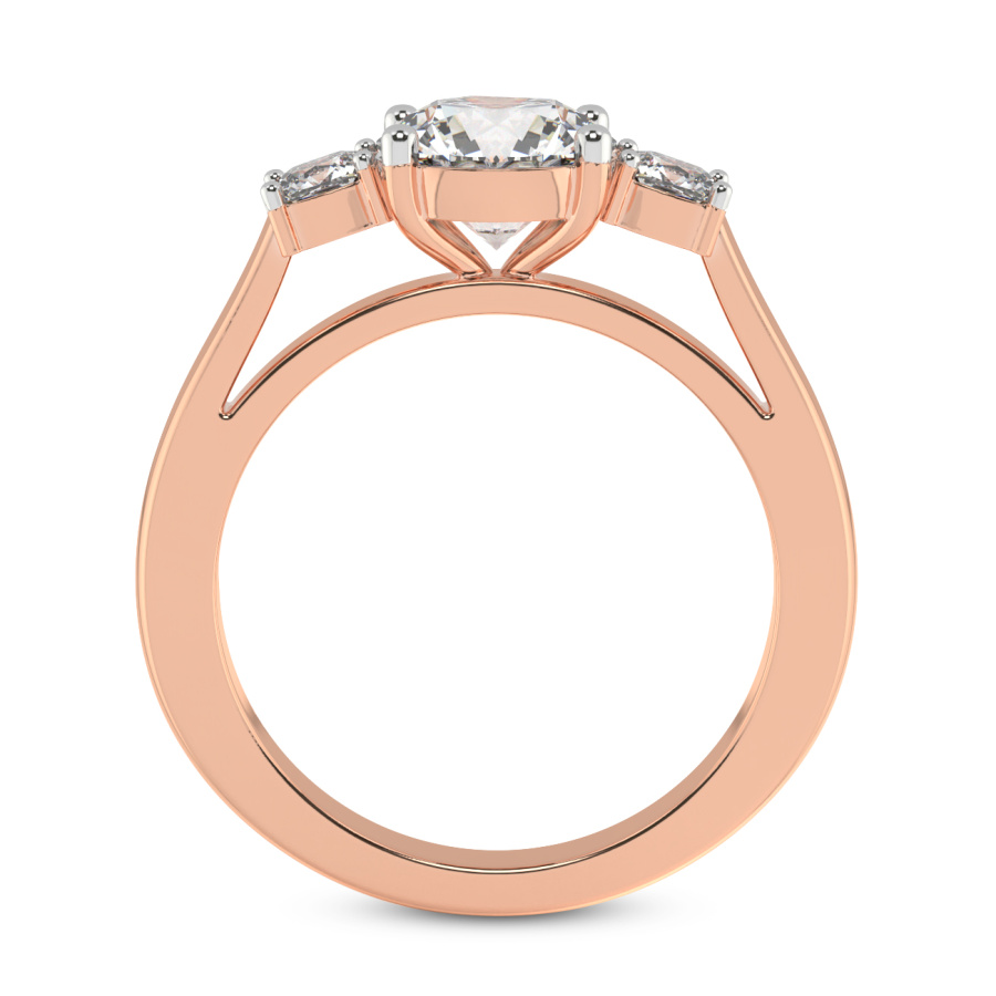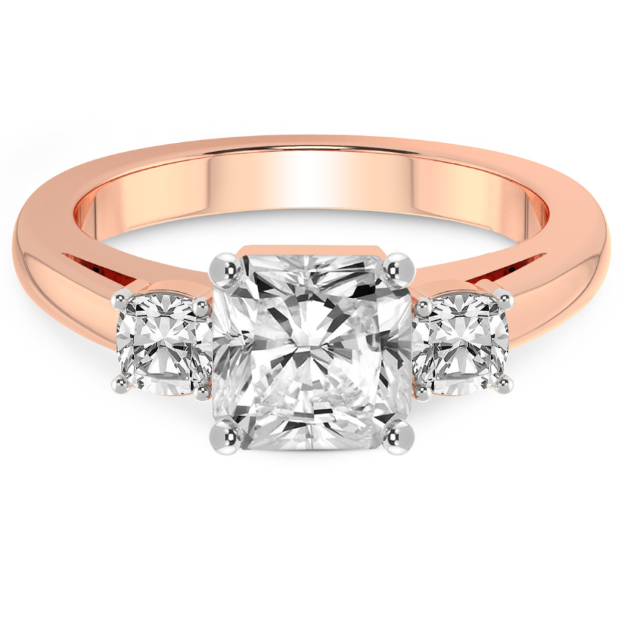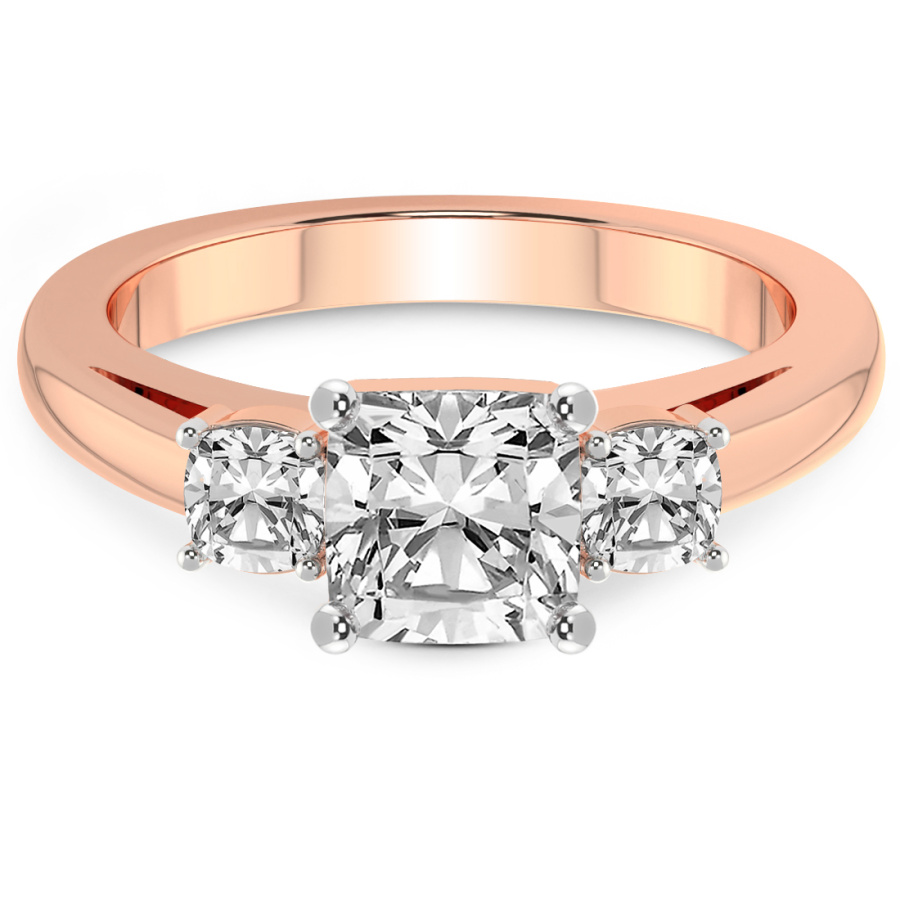This Maya Three Stone Side Cushion Diamond Ring is a Round shape ring Engagement type 18k Rose Gold
