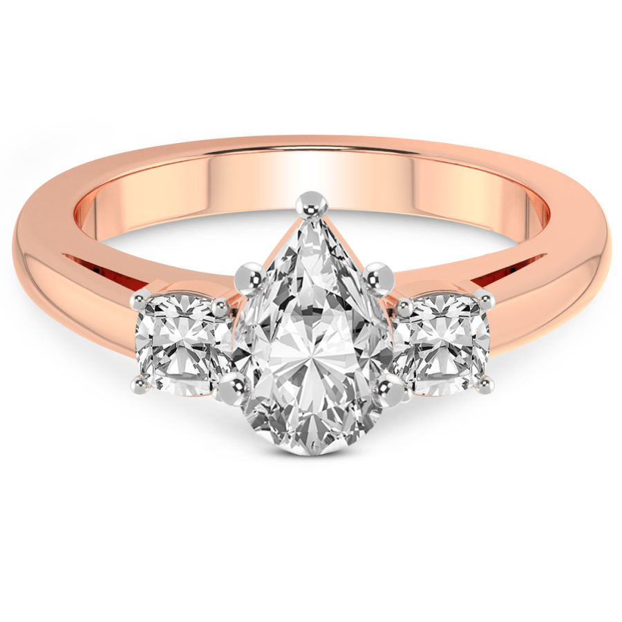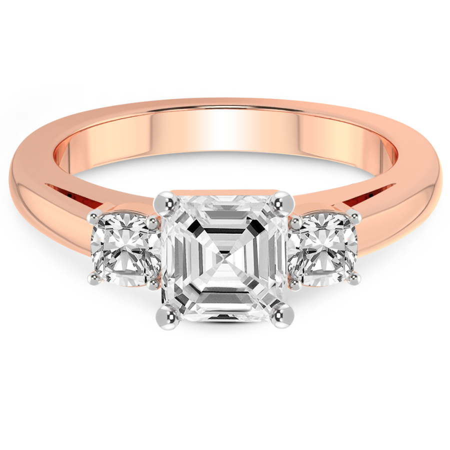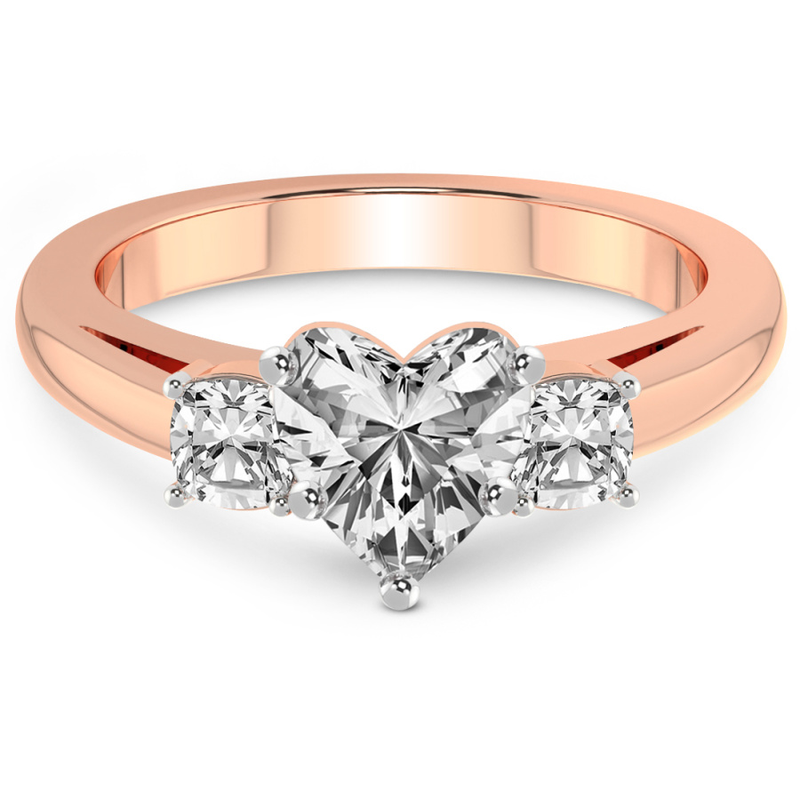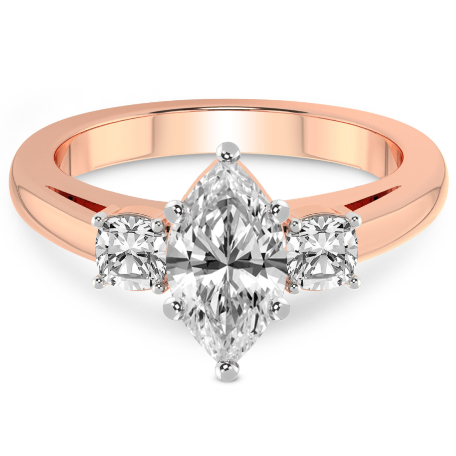This Maya Three Stone Side Cushion Diamond Ring is a Round shape ring Engagement type 18k Rose Gold