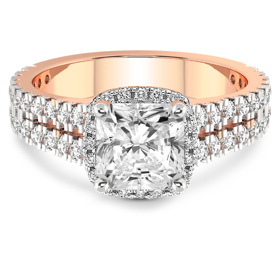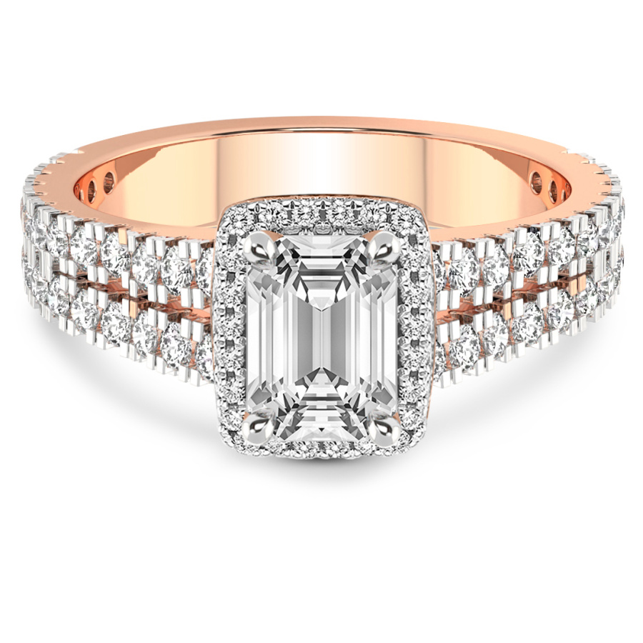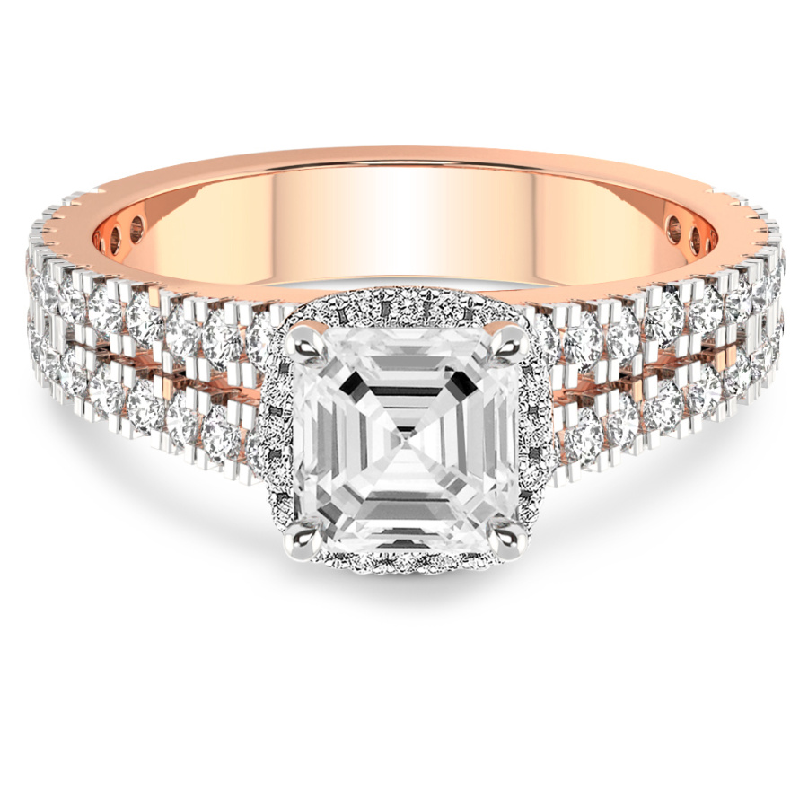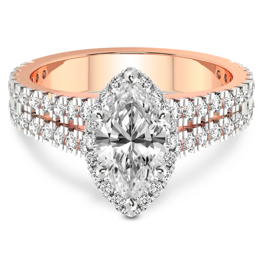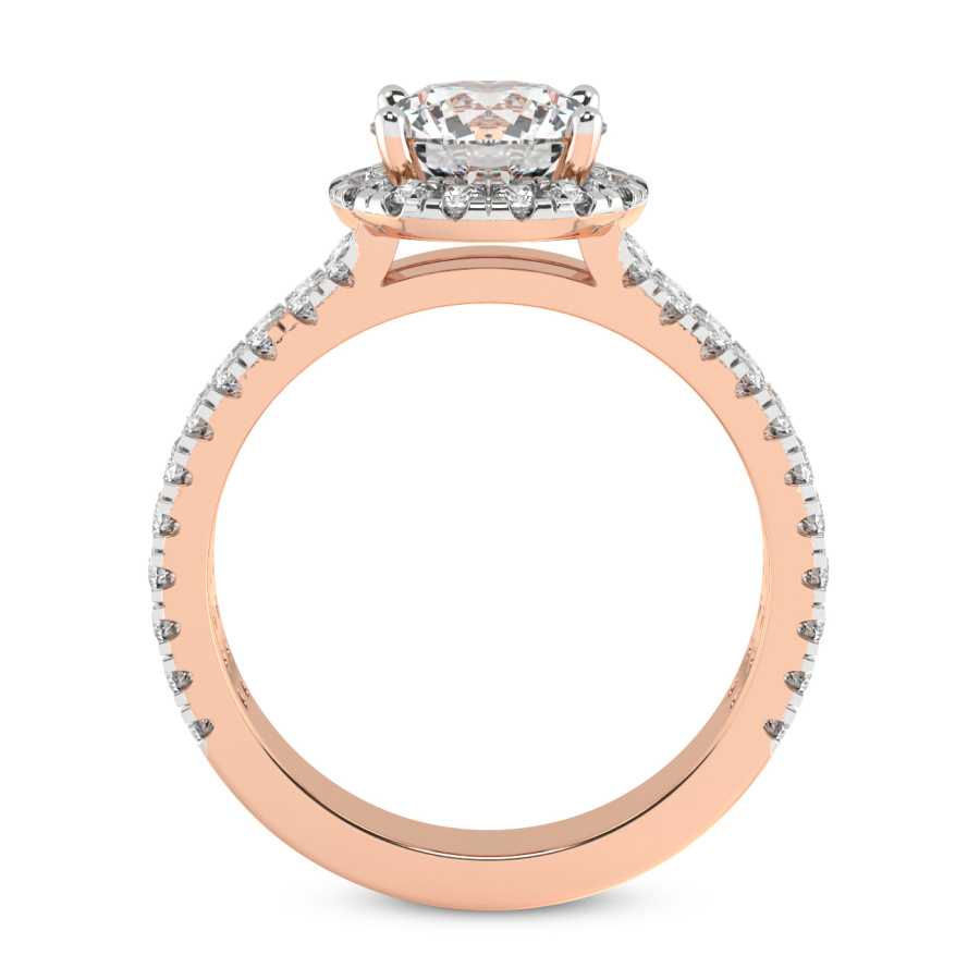 This Noelle Split Shank Halo Diamond Ring is a Round shape ring Engagement type 18k Rose Gold