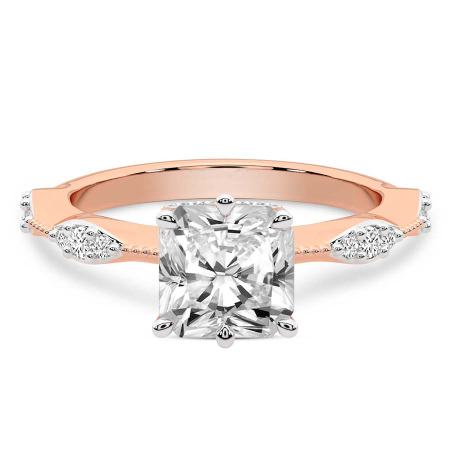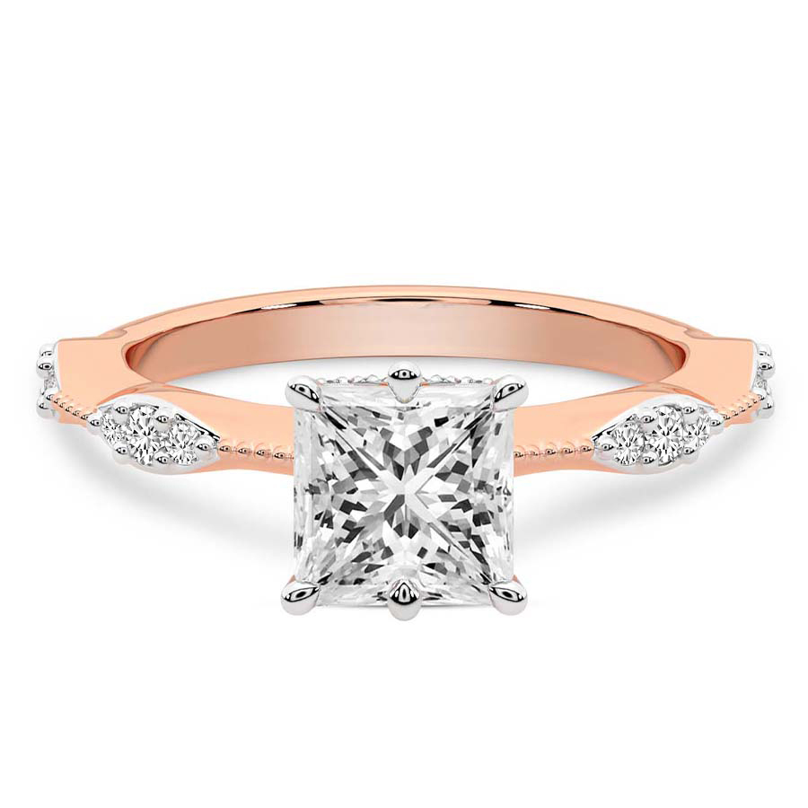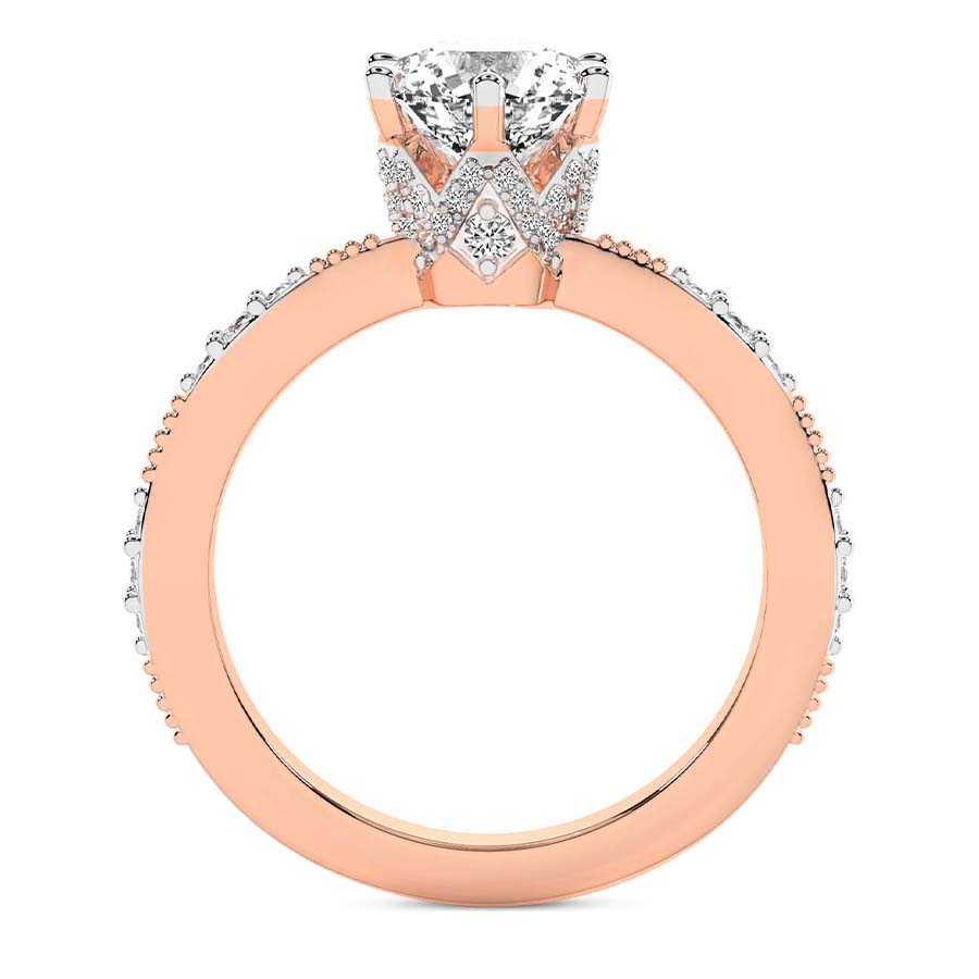 This Paisley Fern Side Stone Ring is a Round shape ring Engagement type 18k Rose Gold