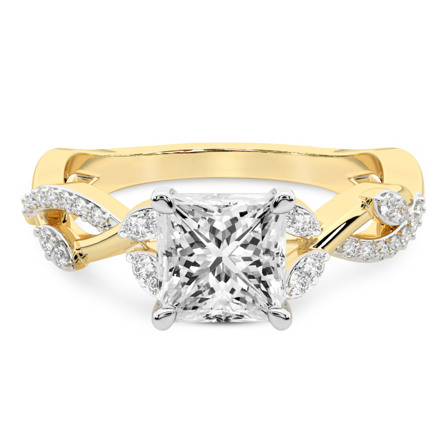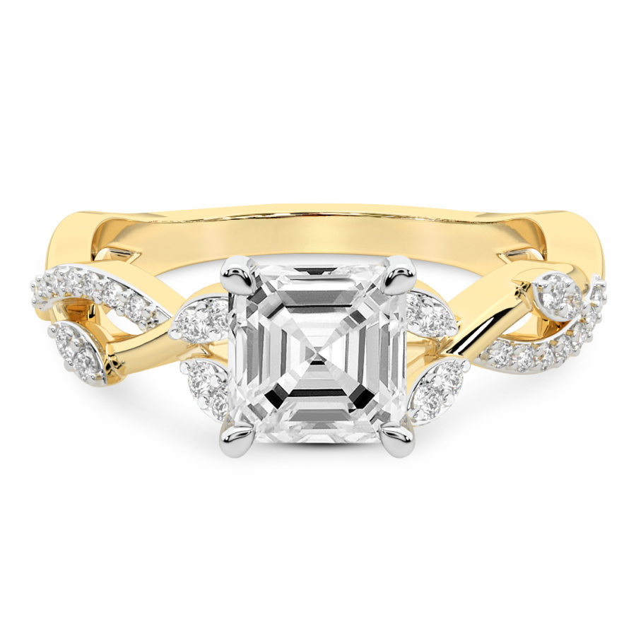 This Amélie Twisted Shank Diamond Ring is a Round shape ring Engagement type 18k Yellow Gold