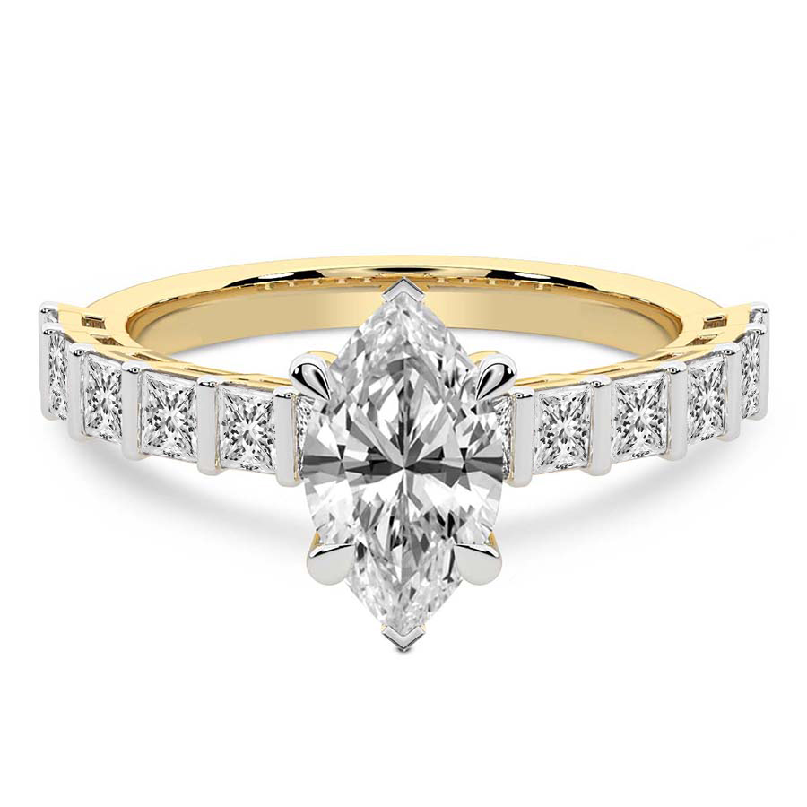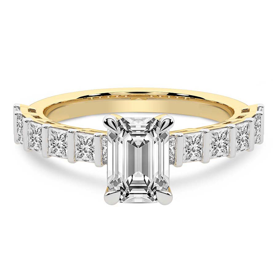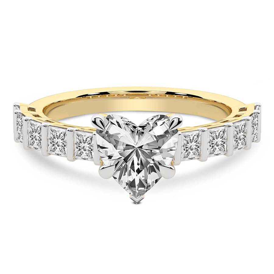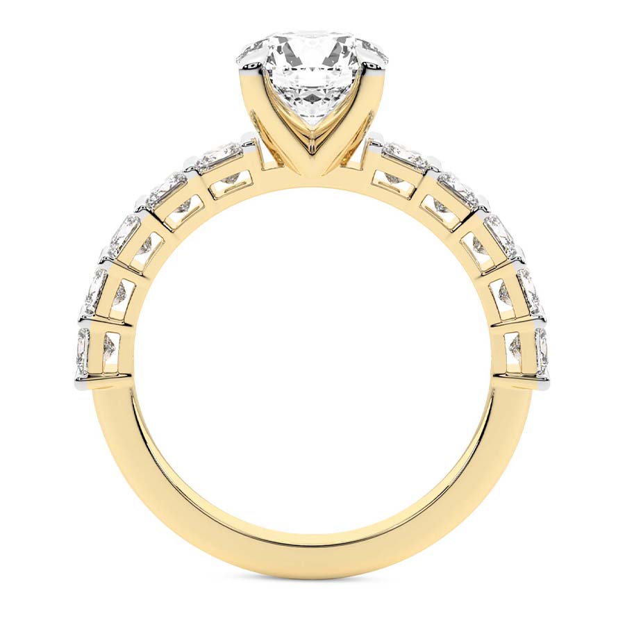 This Brigitte Side Stone Princess Ring is a Round shape ring Engagement type 18k Yellow Gold
