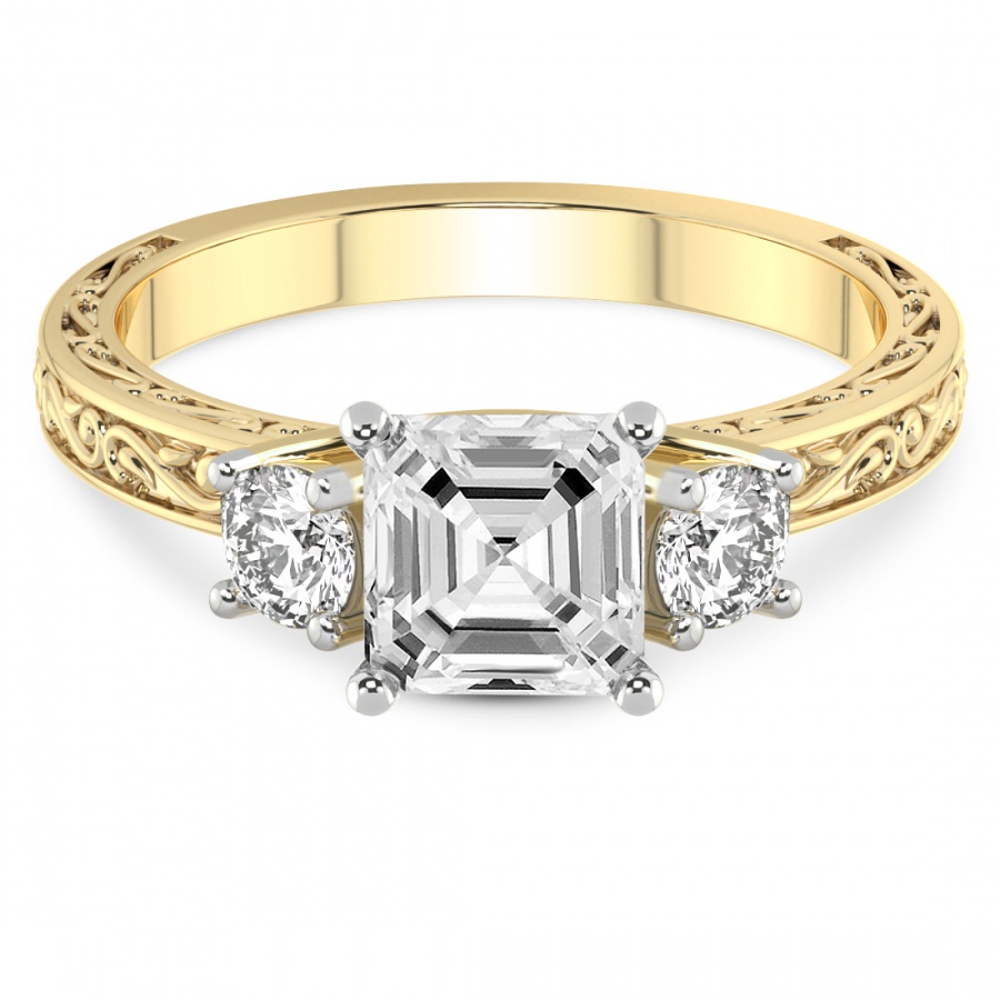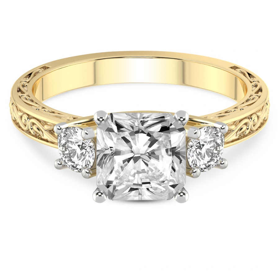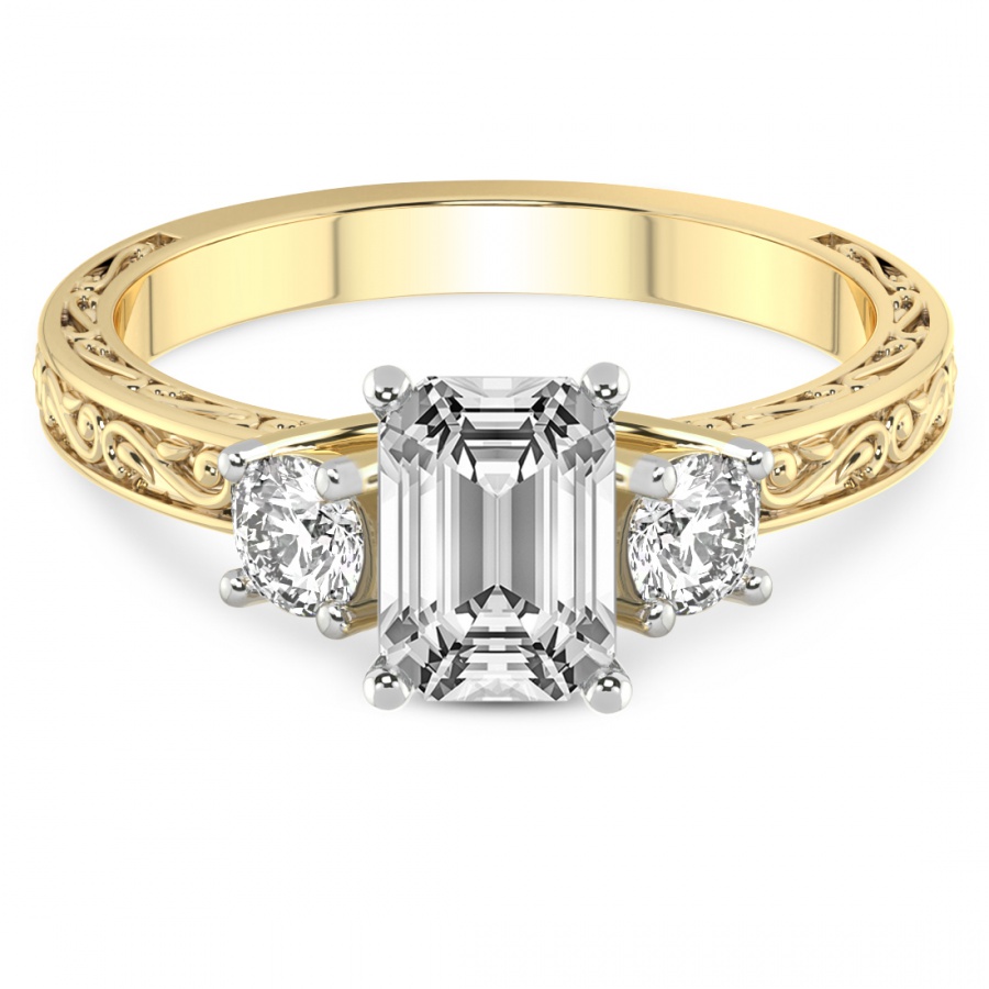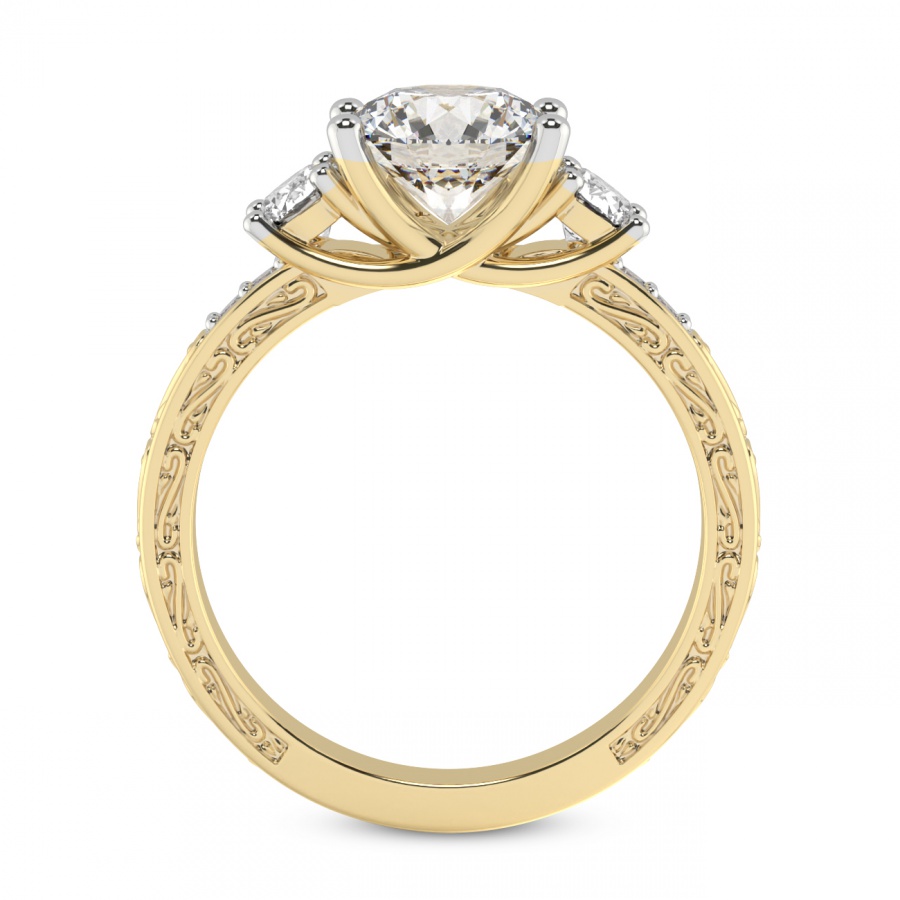 This Eloise Three Stone Felicity Ring is a Round shape ring Engagement type 18k Yellow Gold