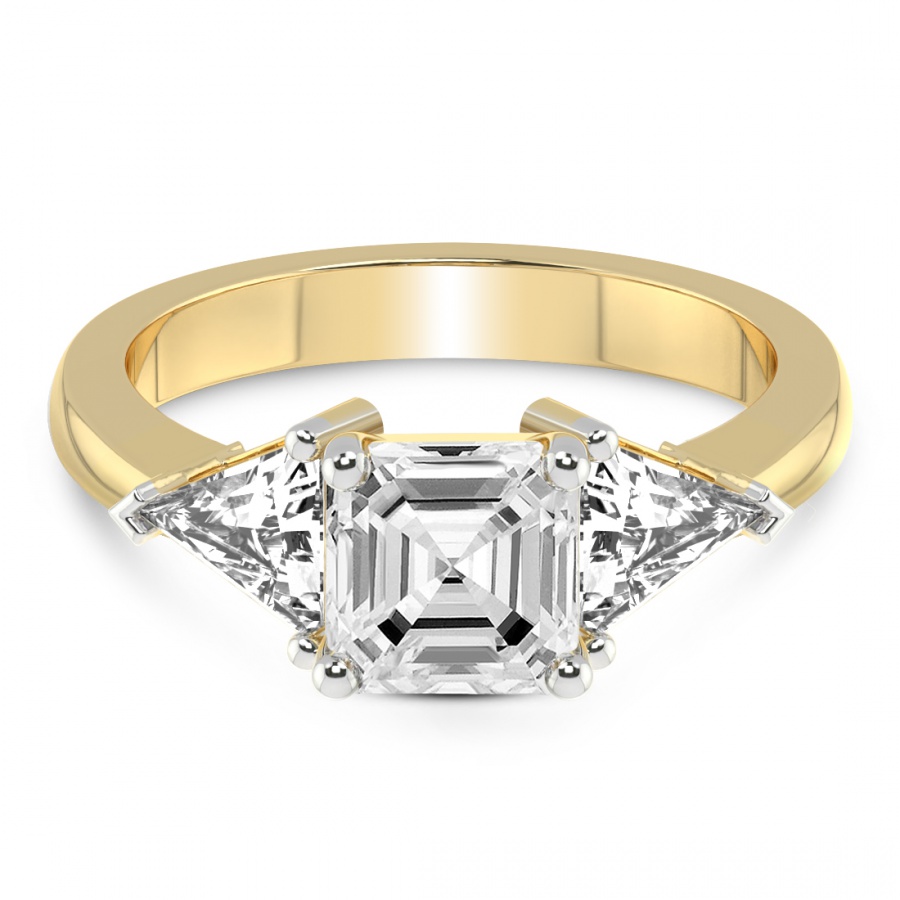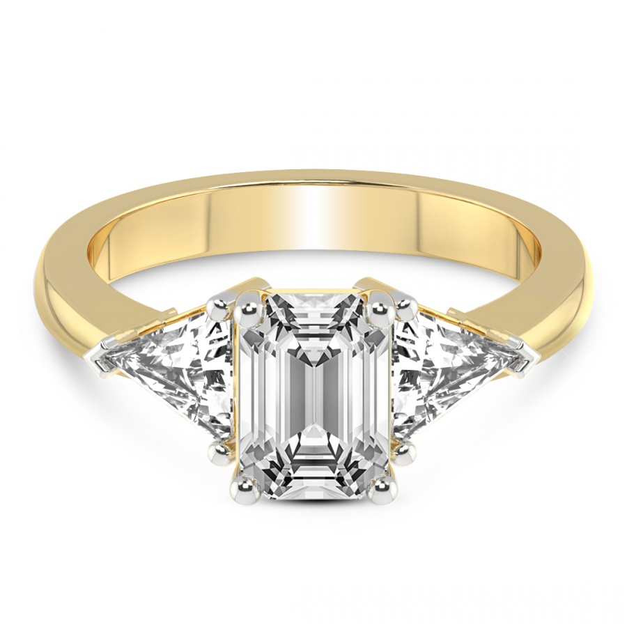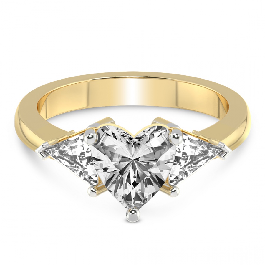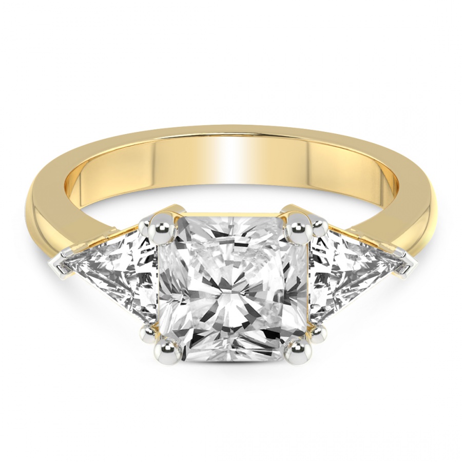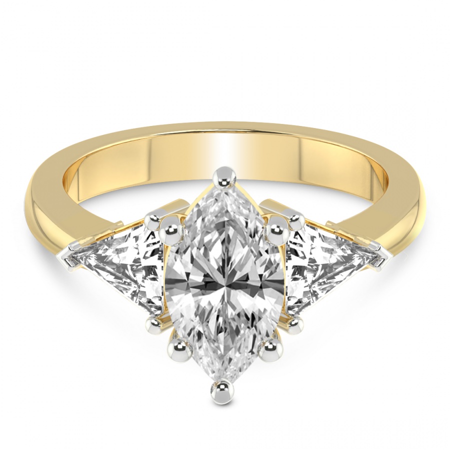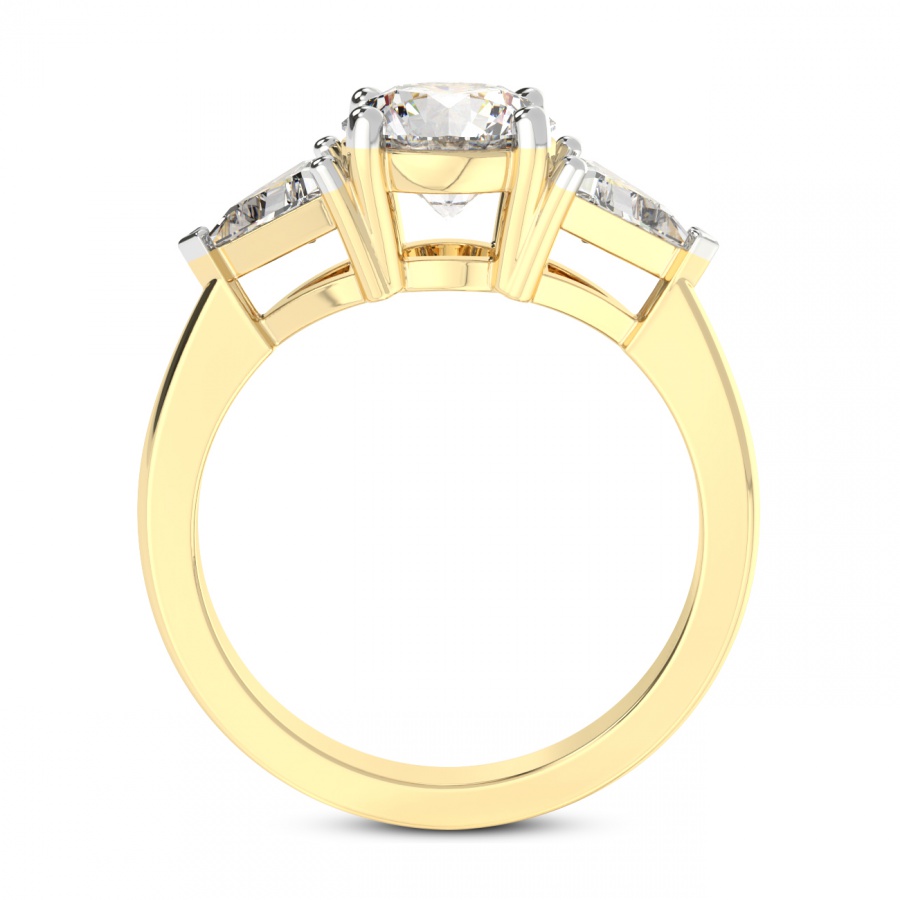 This Séverine Three Stone Side Trillion Diamond Ring is a Round shape ring Engagement type 18k Yellow Gold