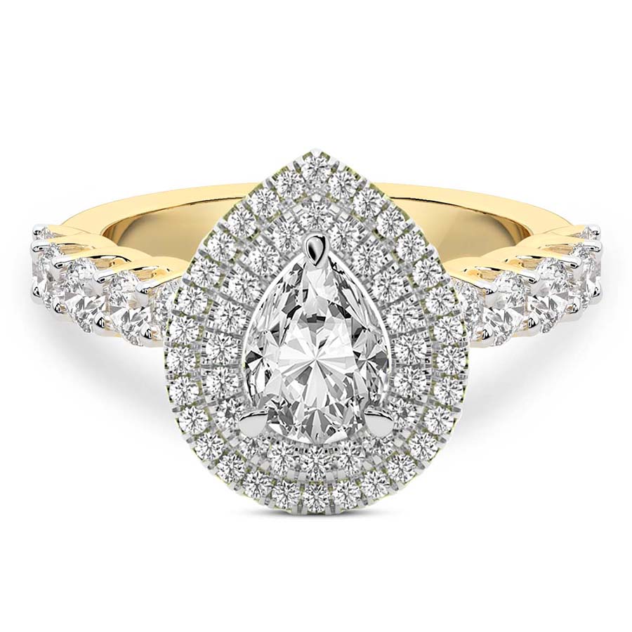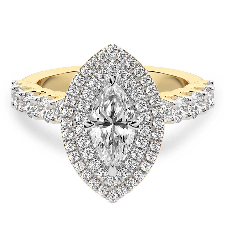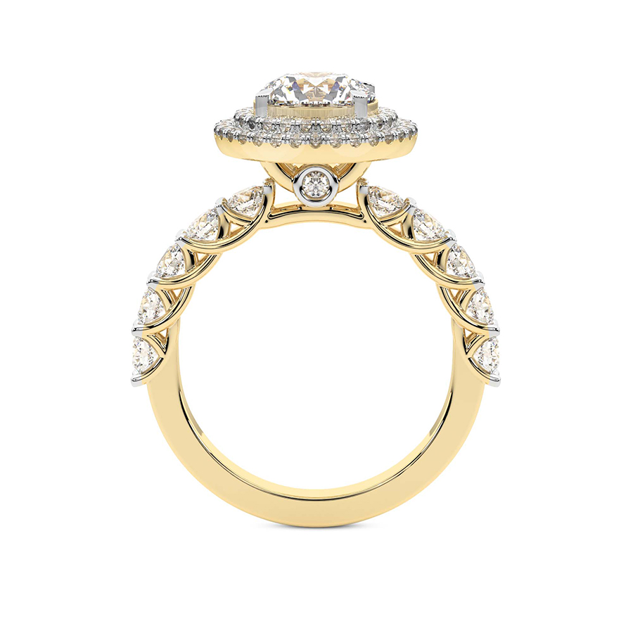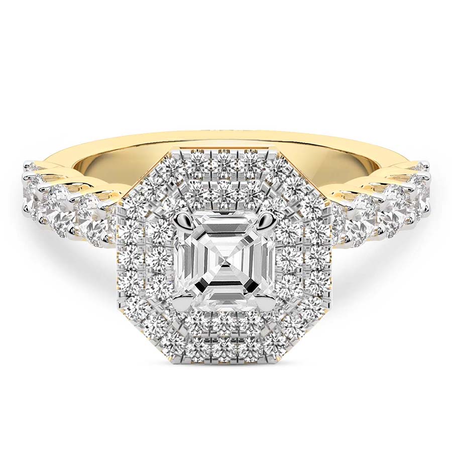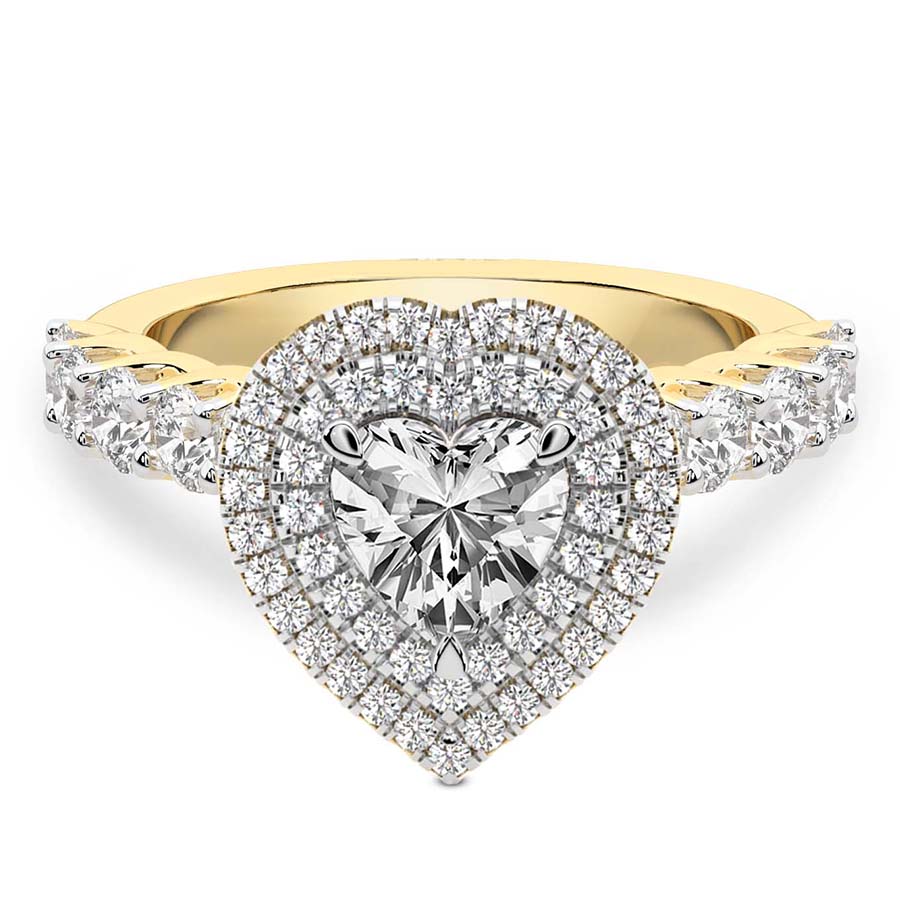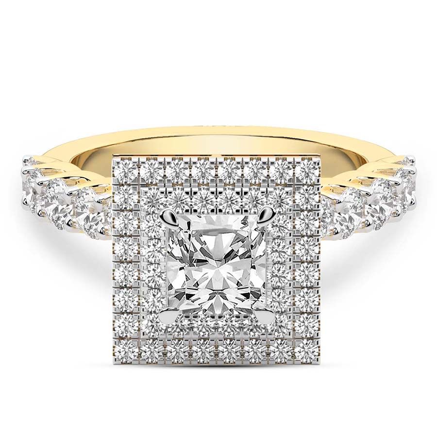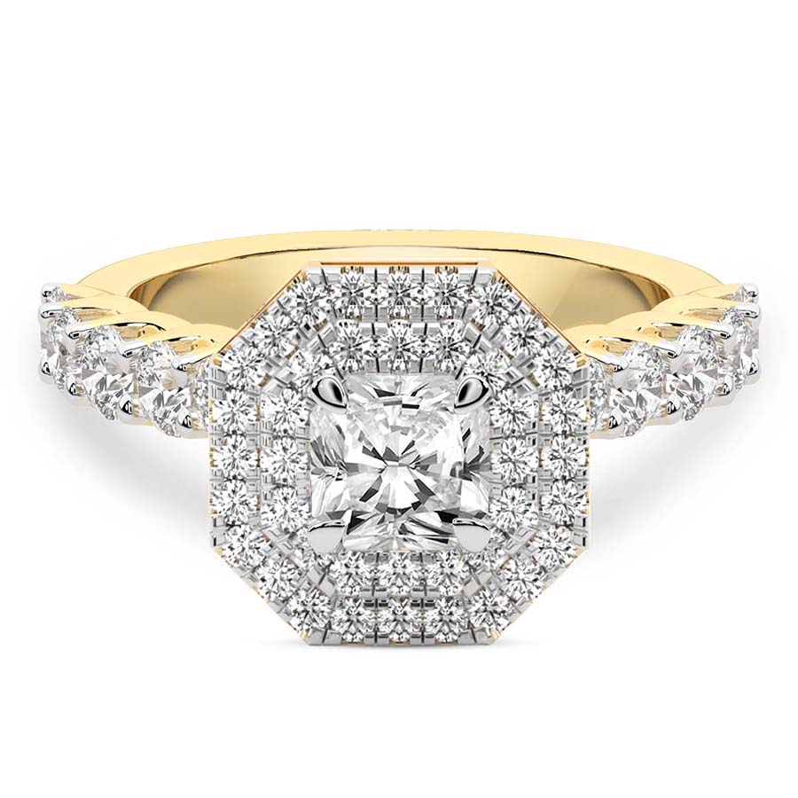 This Yvette Cresta Double Halo Diamond Ring is a Round shape ring Engagement type 18k Yellow Gold