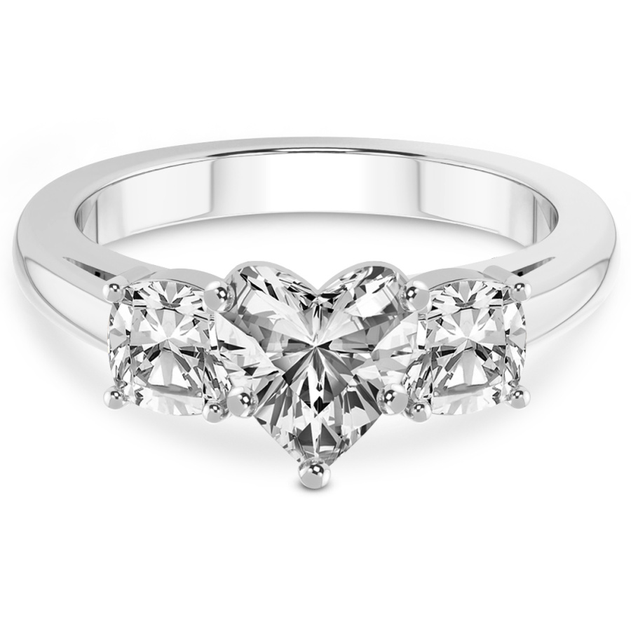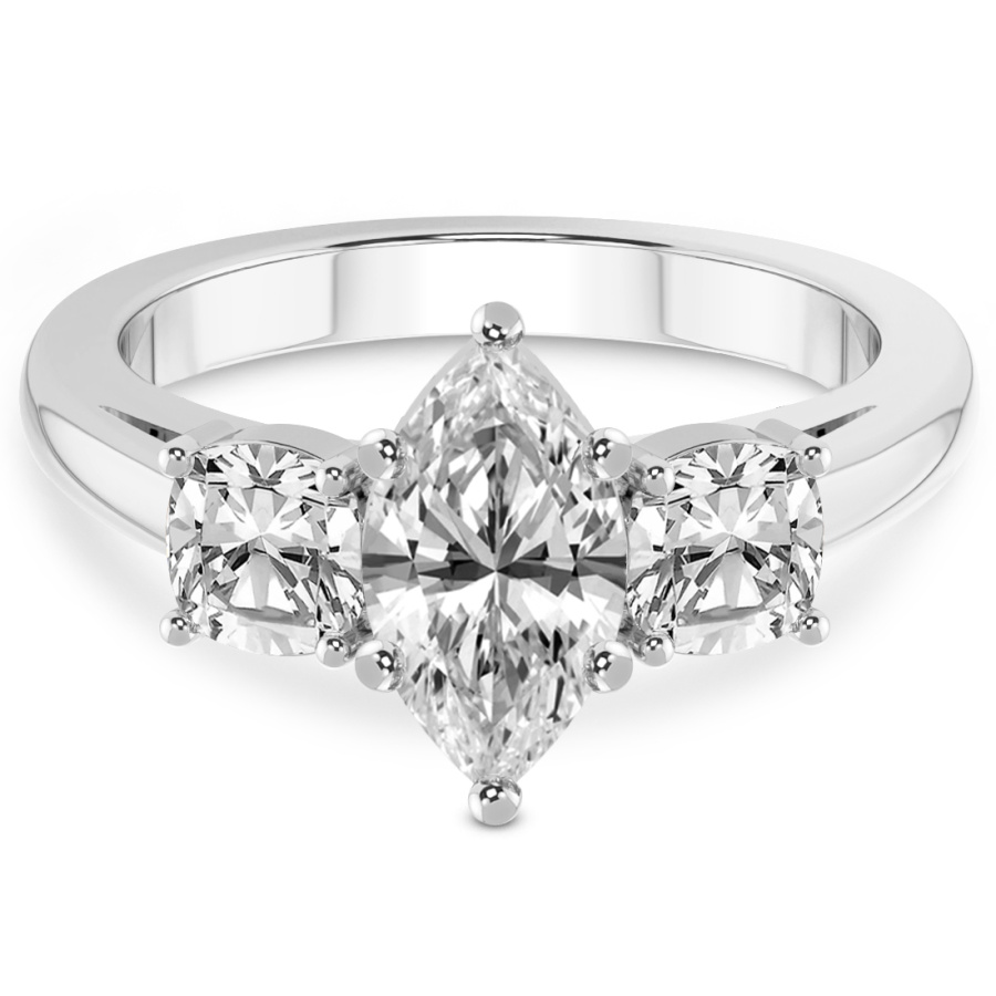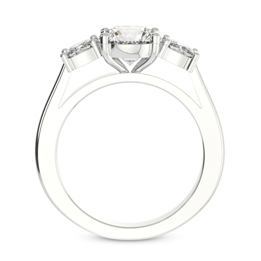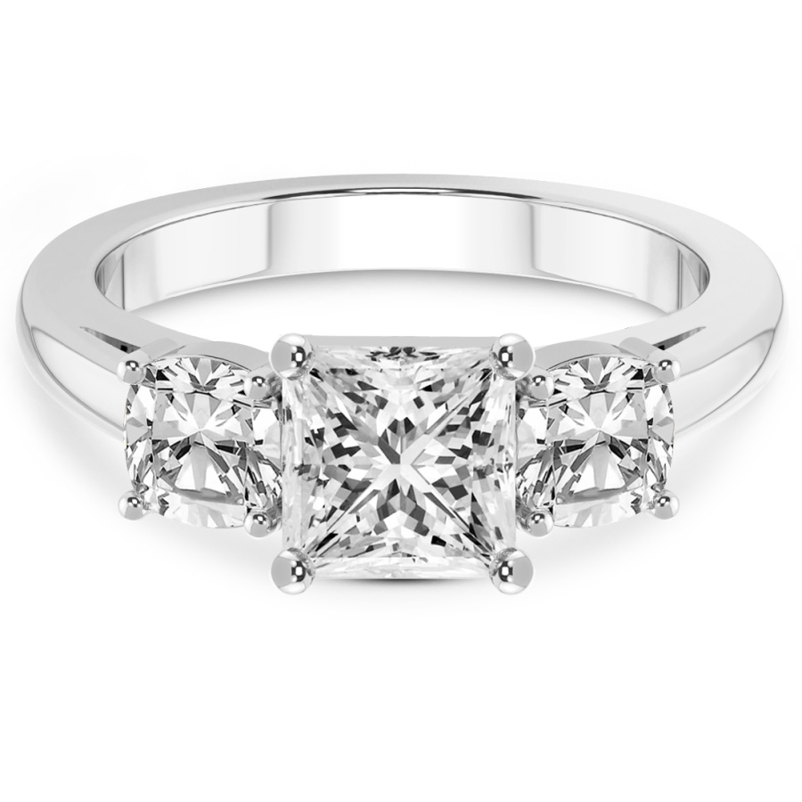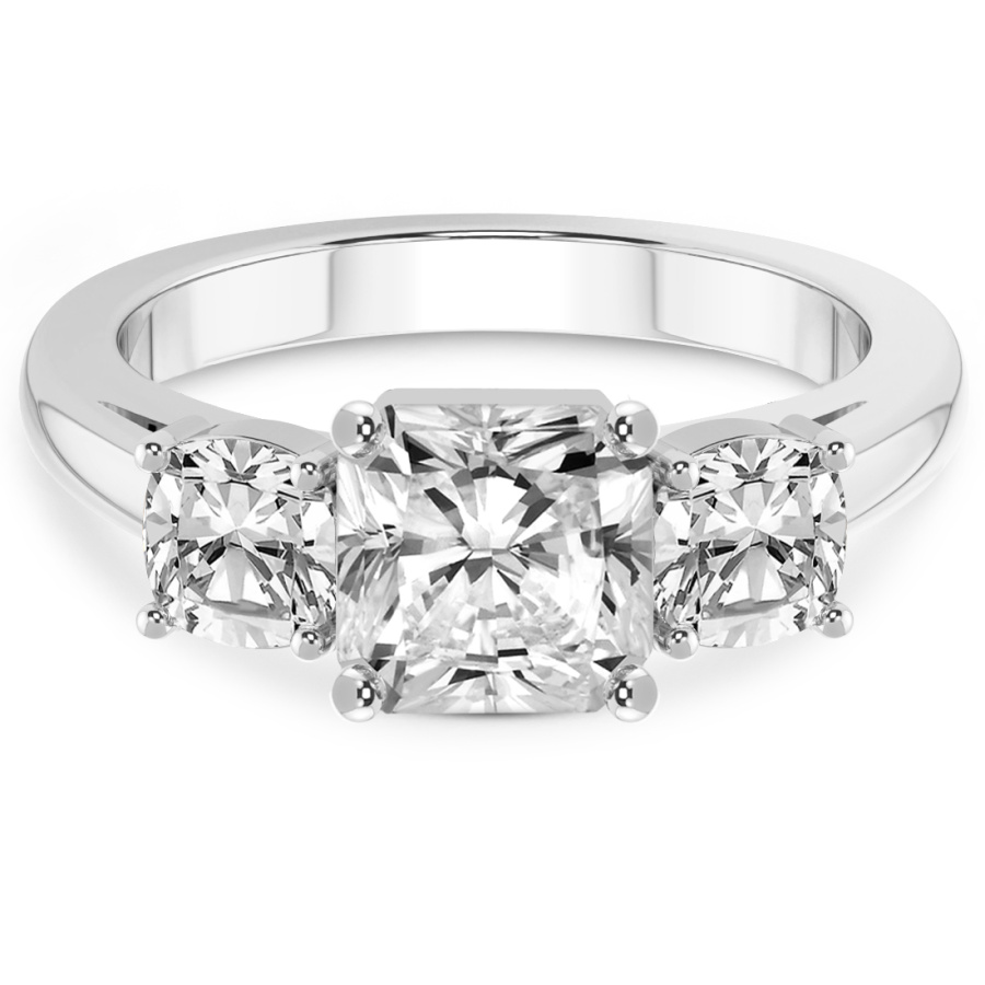 This Alice Three Stone Side Cushion Diamond Ring is a Round shape ring Engagement type pt Platinum
