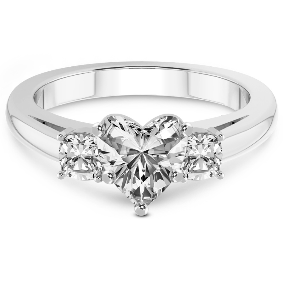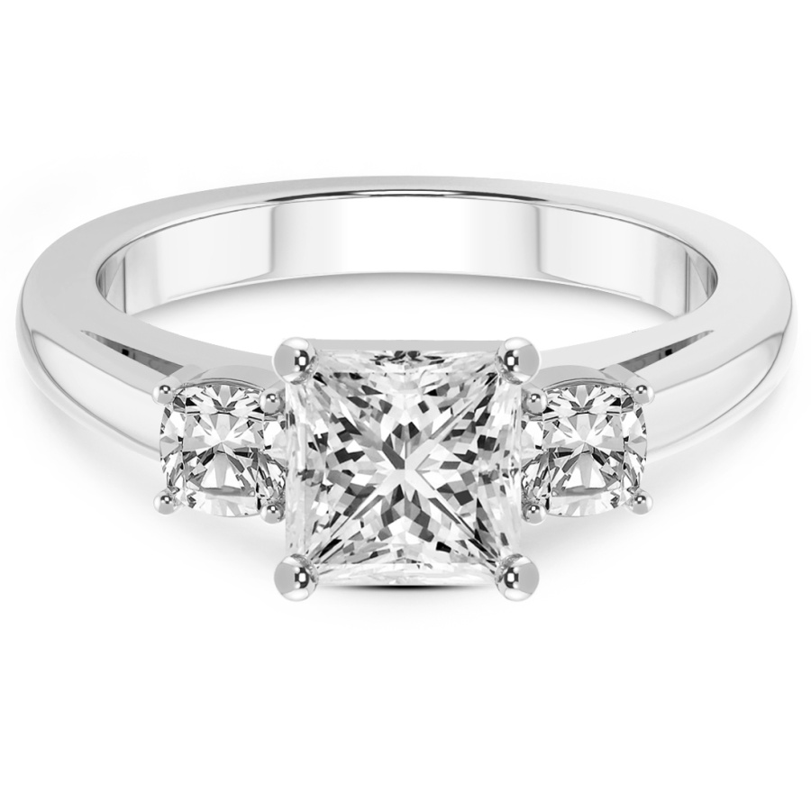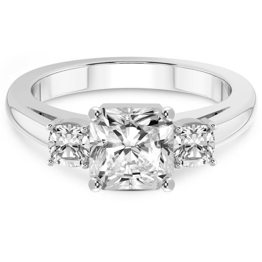 This Maya Three Stone Side Cushion Diamond Ring is a Round shape ring Engagement type pt Platinum