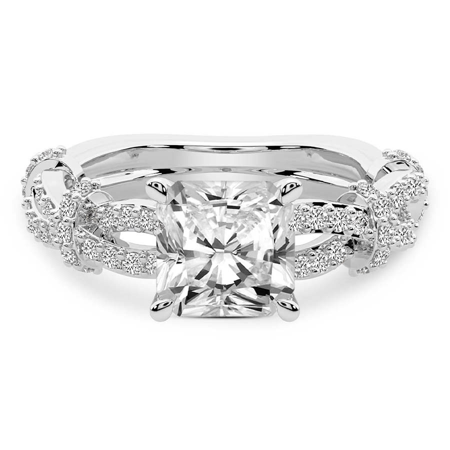 This Pauline Double Twist Side Stone Ring is a Round shape ring Engagement type pt Platinum