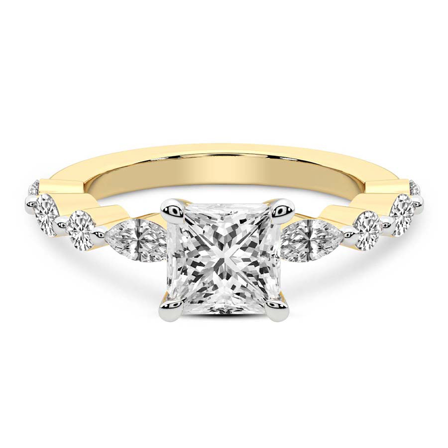 This Anaïs Marquise Side Stone Ring is a Princess shape ring Engagement type 18k Yellow Gold
