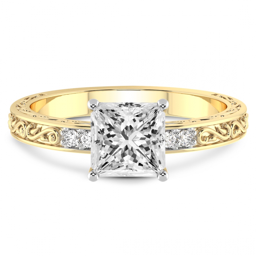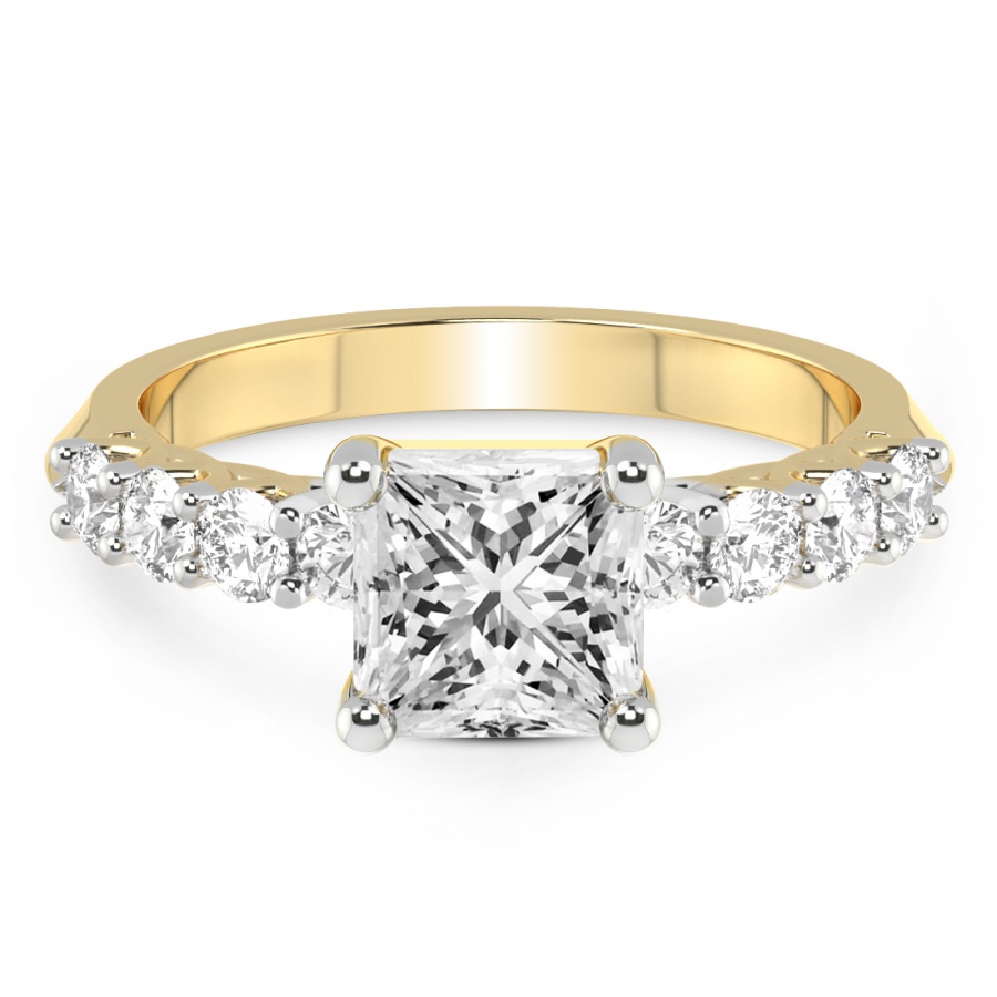 This Arianna Gianna Prongs Diamond Ring is a Princess shape ring Engagement type 18k Yellow Gold