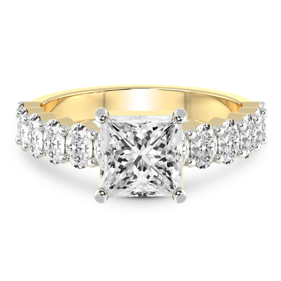 This Eliza Eternity Side Stone Ring is a Princess shape ring Engagement type 18k Yellow Gold