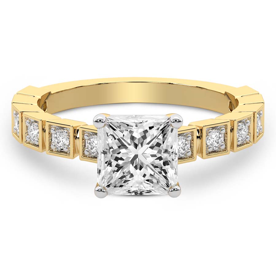 This Matilda Side Stone Diamond Ring is a Princess shape ring Engagement type 18k Yellow Gold