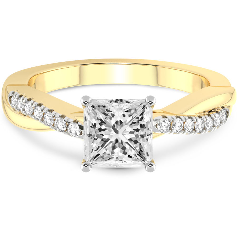 This Eden Twisted Shank Diamond Ring is a Princess shape ring Engagement type 18k Yellow Gold