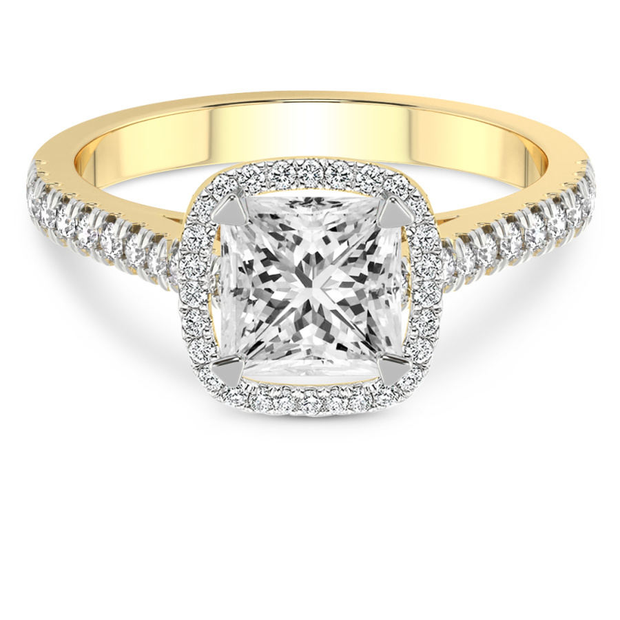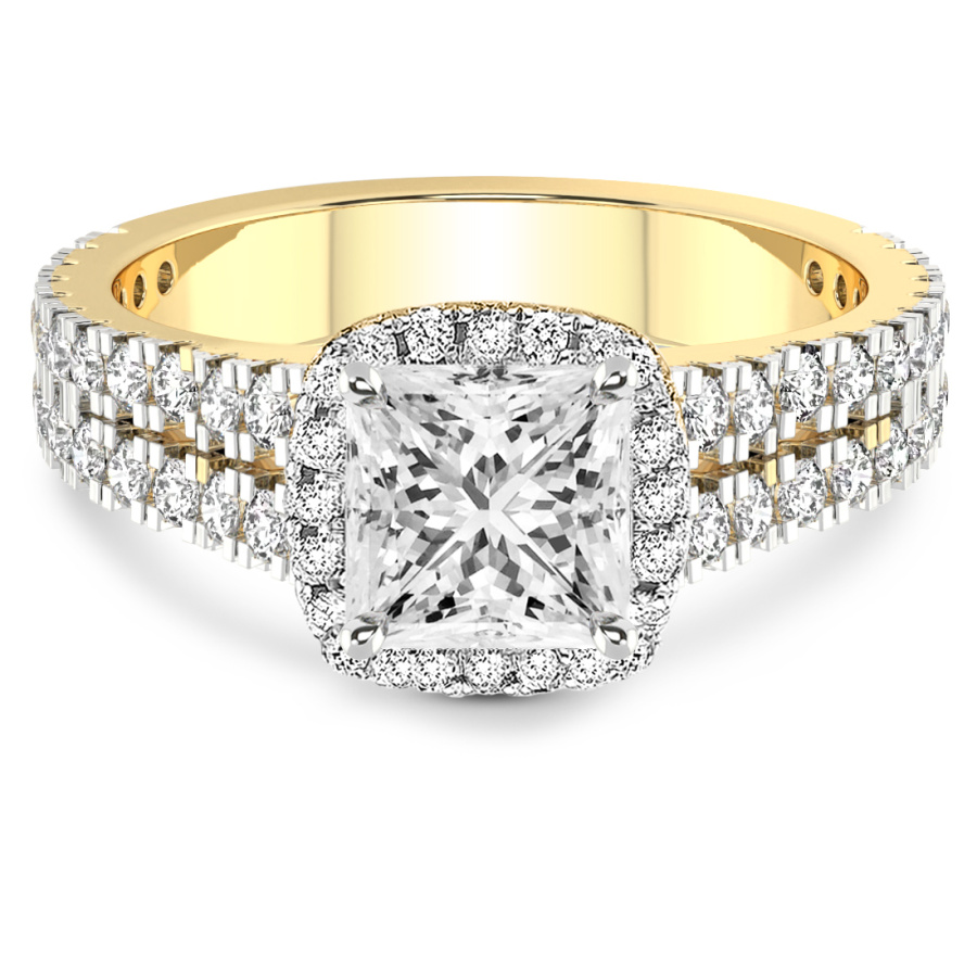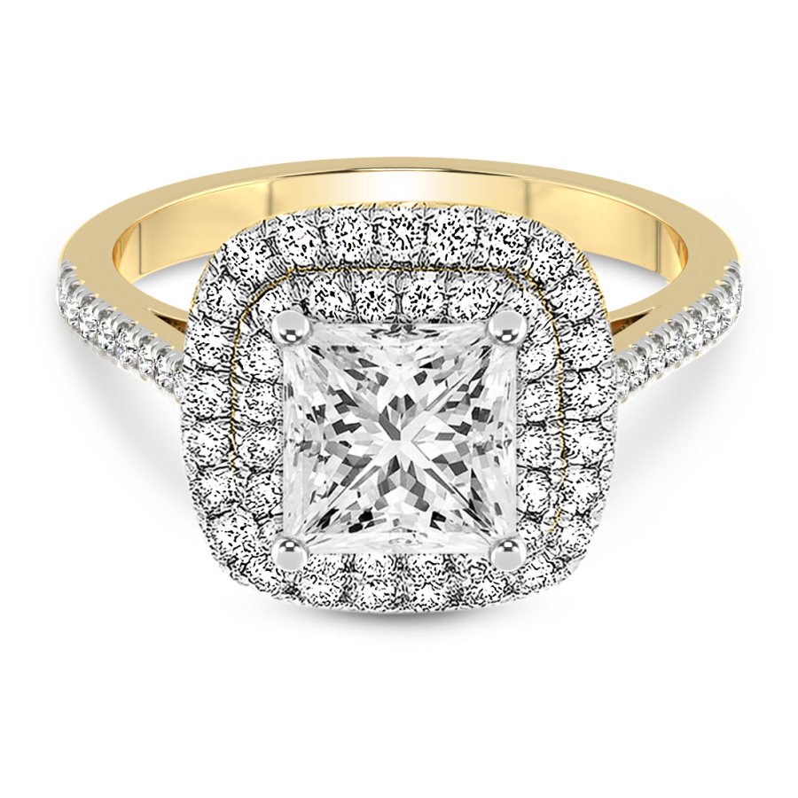This Brianna Double Halo Diamond Ring is a Princess shape ring Engagement type 18k Yellow Gold