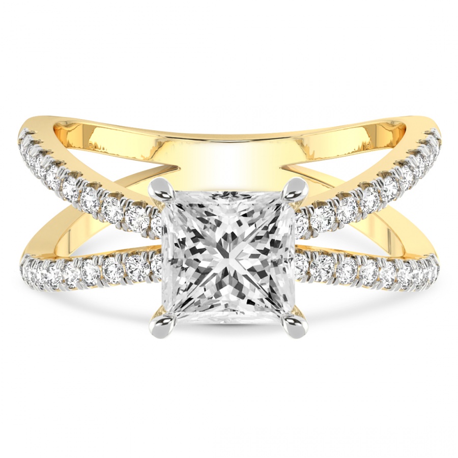This Dorothy Criss Cross Diamond Ring is a Princess shape ring Engagement type 18k Yellow Gold