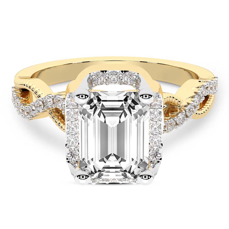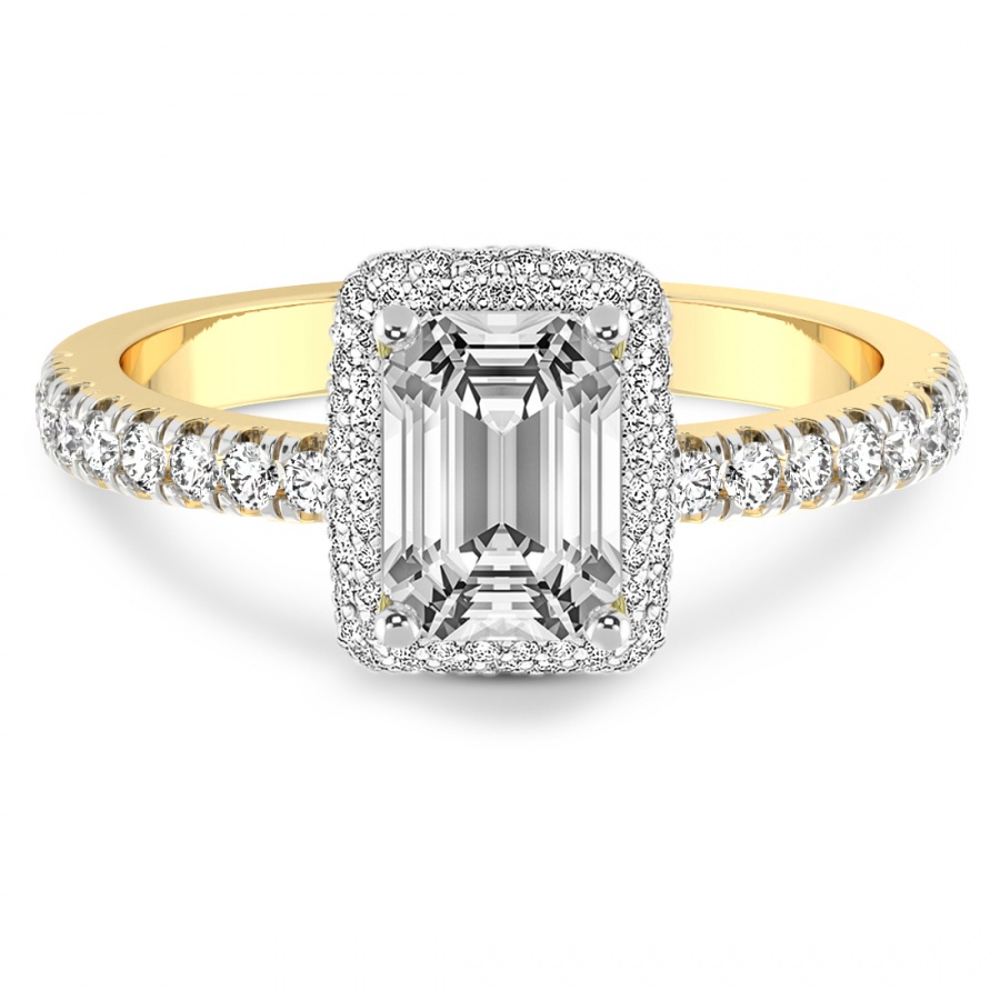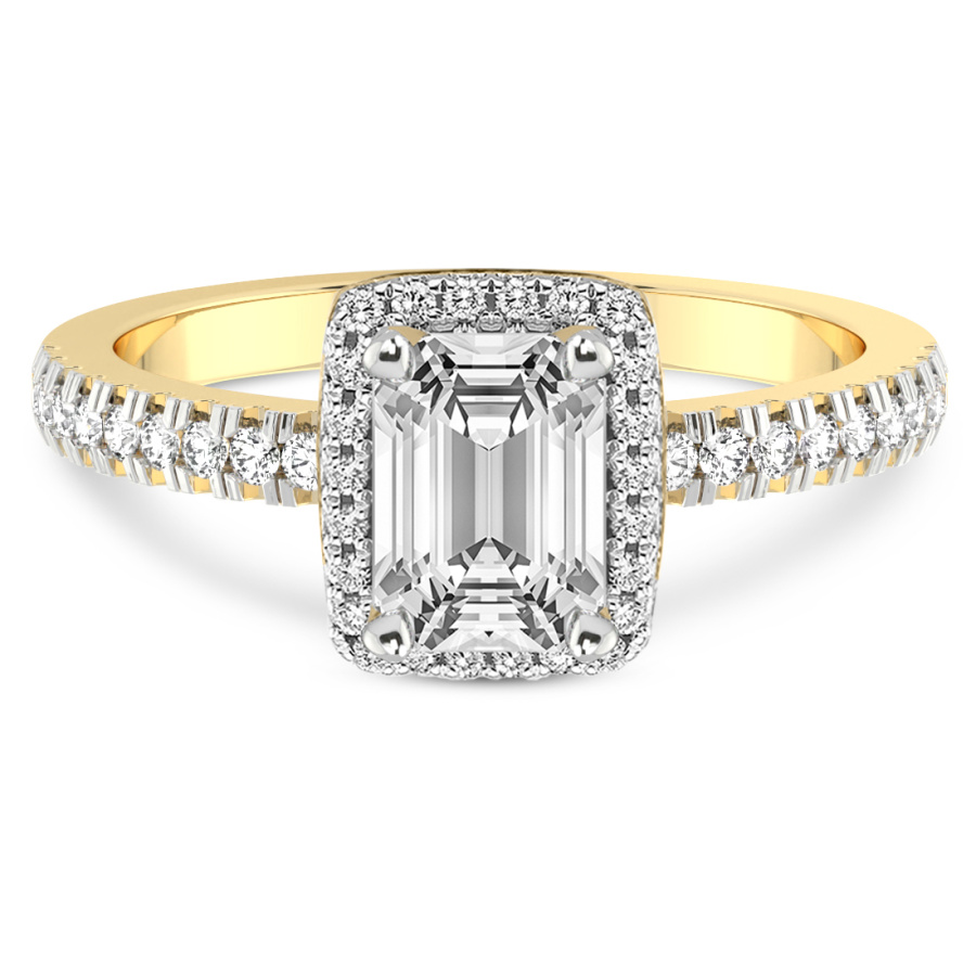 This Alice Classic Halo Diamond Ring is a Emerald shape ring Engagement type 18k Yellow Gold