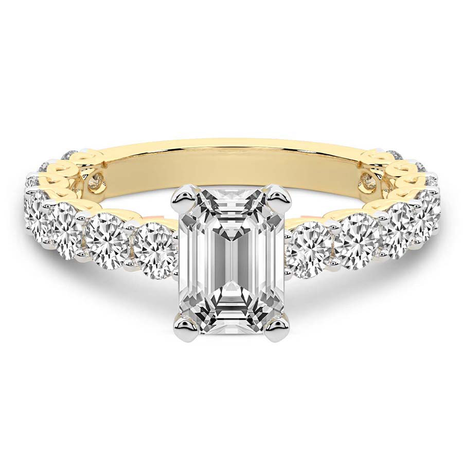 This Zoé Side Stone Encrusted Ring is a Emerald shape ring Engagement type 18k Yellow Gold