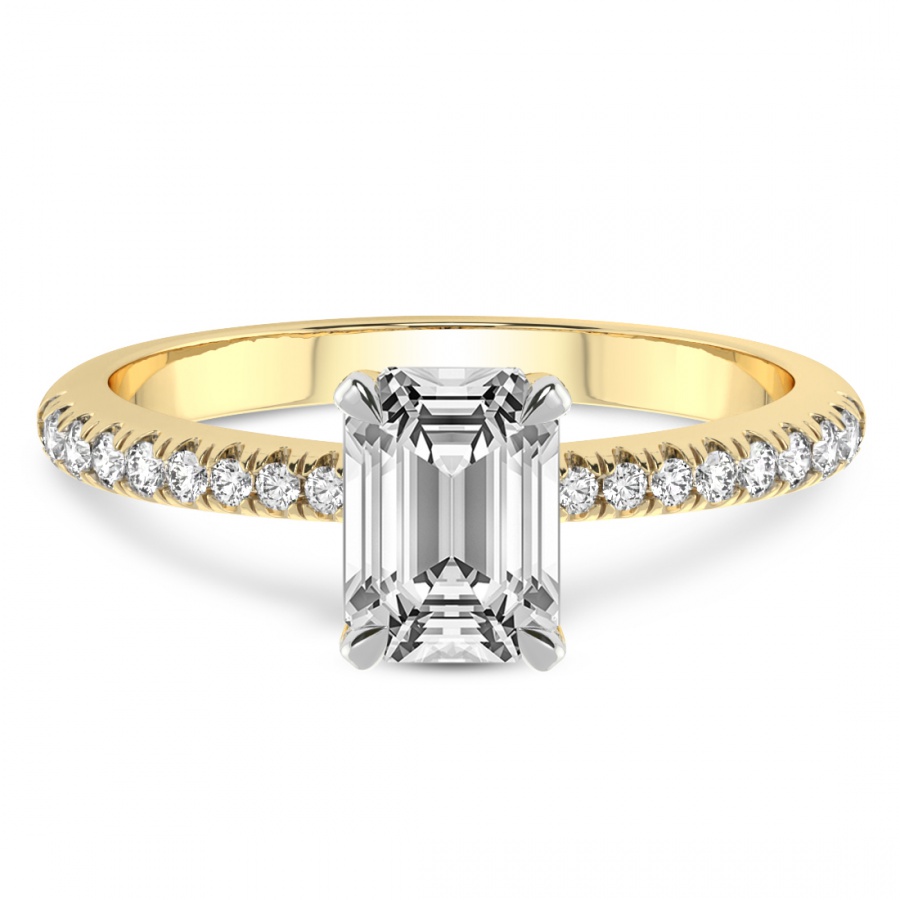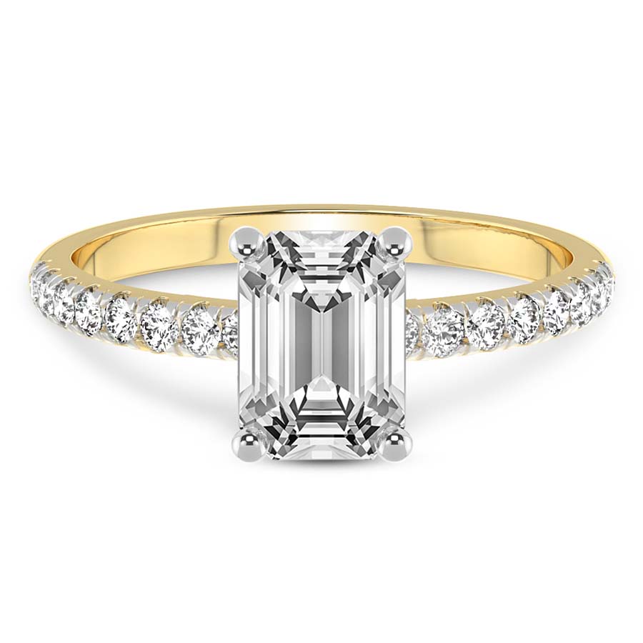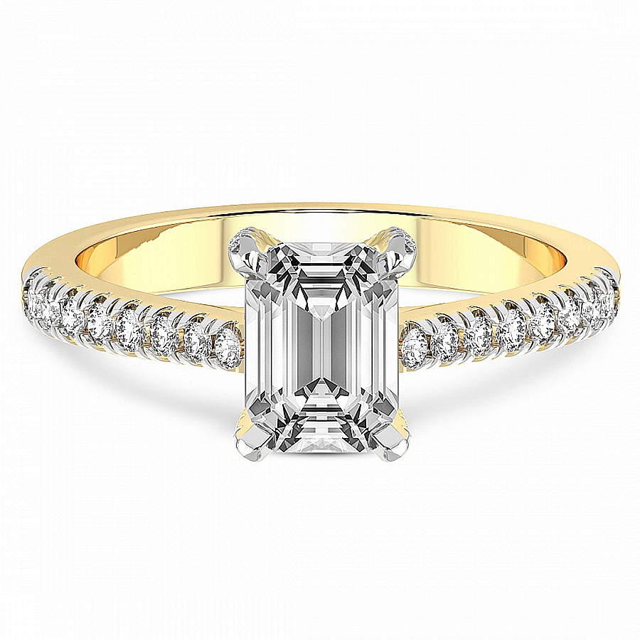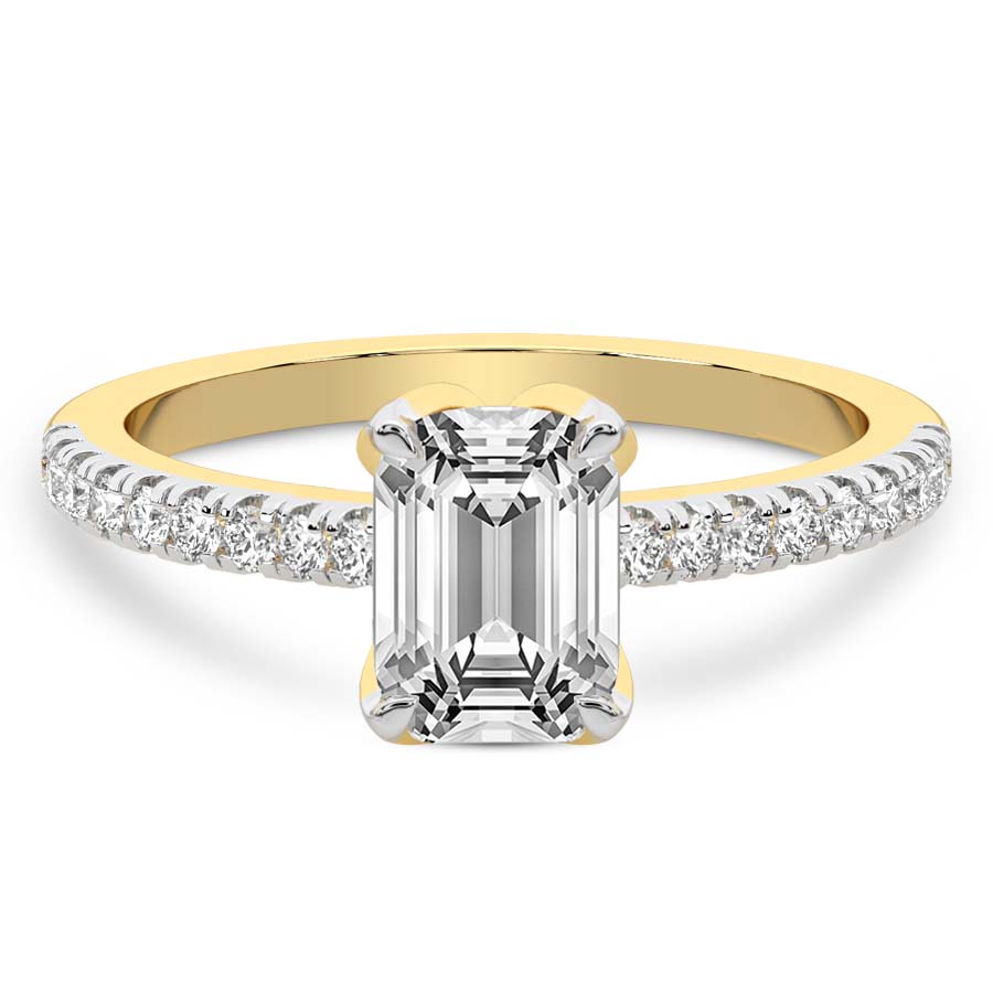 This Cora Diamond Studded Petite Solitaire Diamond Ring is a Emerald shape ring Engagement type 18k Yellow Gold