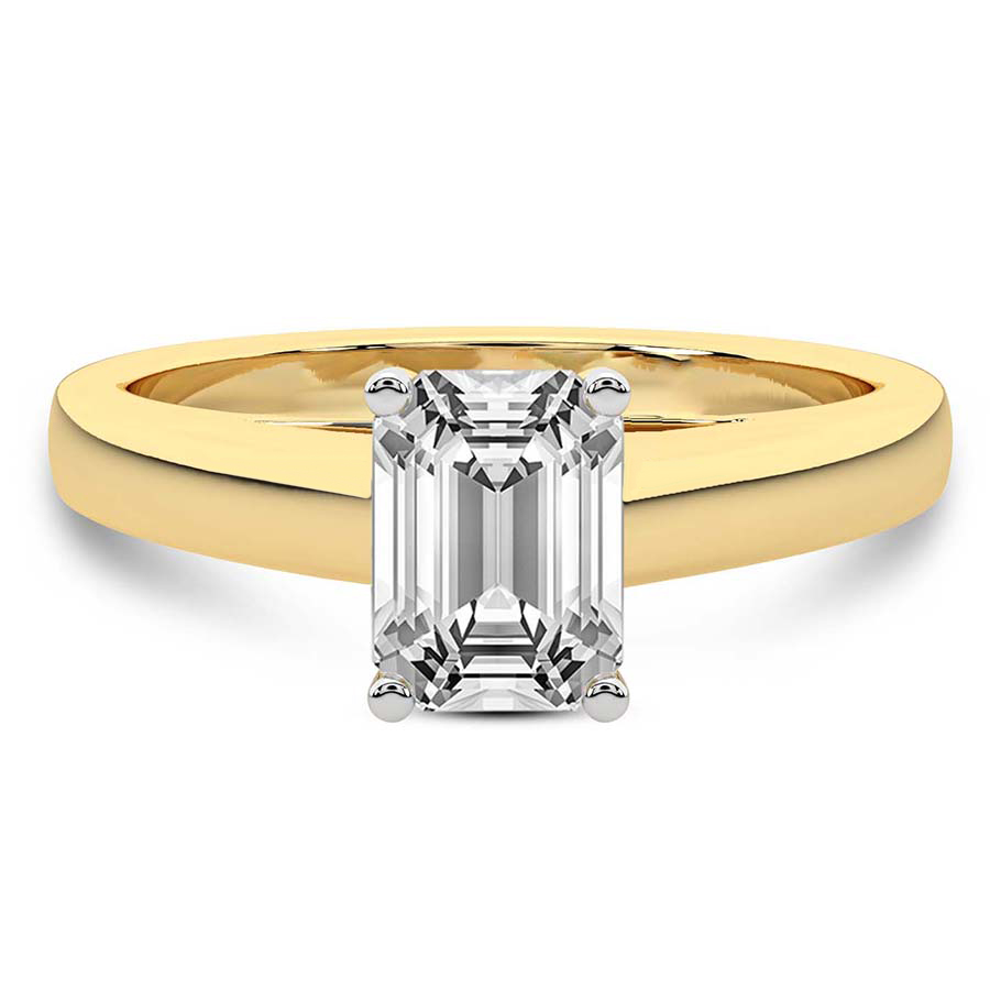 This Ava Classic Bezel Solitaire Diamond Ring is a Emerald shape ring Engagement type 18k Yellow Gold