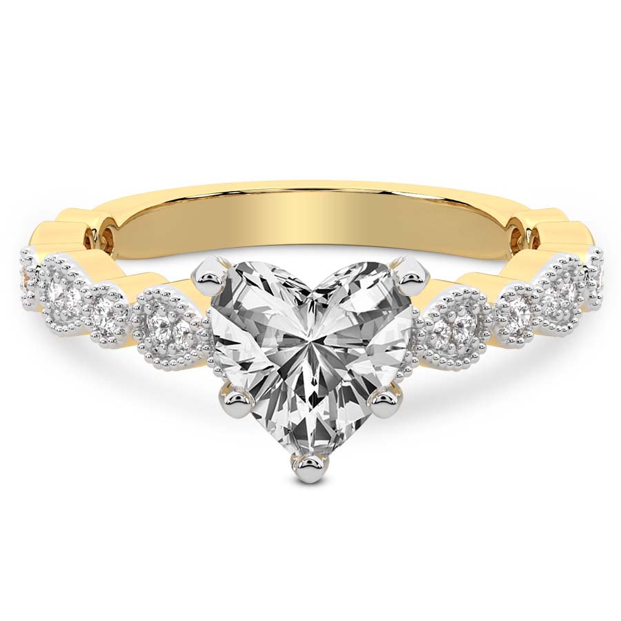 This Molly Elite Milgrain Diamond Ring is a Heart shape ring Engagement type 18k Yellow Gold