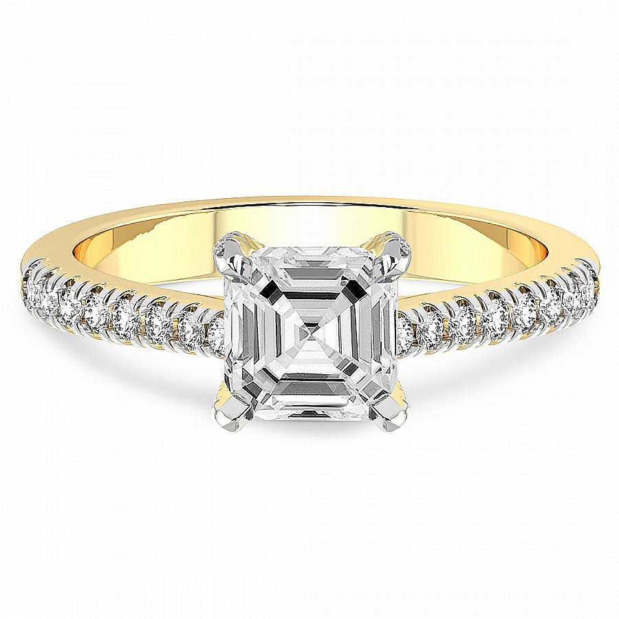 This Piper Hidden Accents Solitaire Lab Diamond Ring is a Asscher shape ring Engagement type 18k Yellow Gold