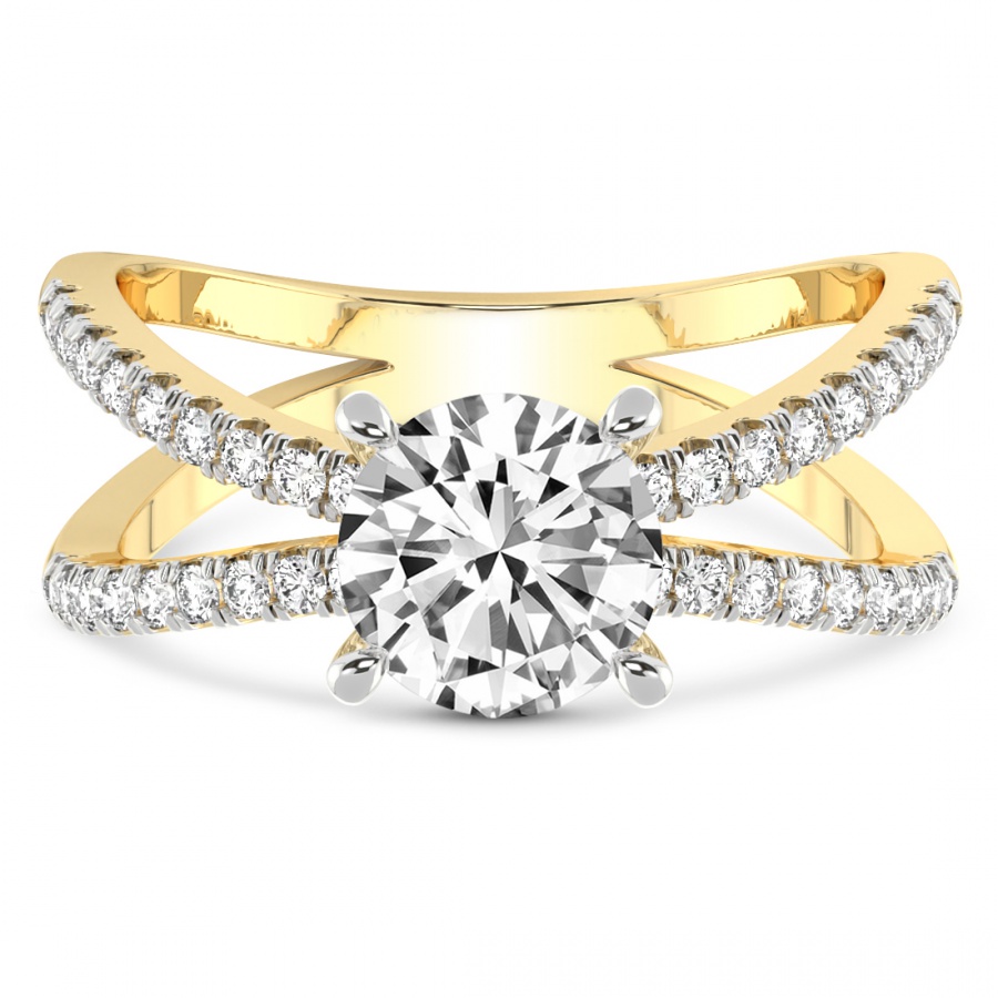 This Dorothy Criss Cross Diamond Ring is a Round shape ring Engagement type 18k Yellow Gold