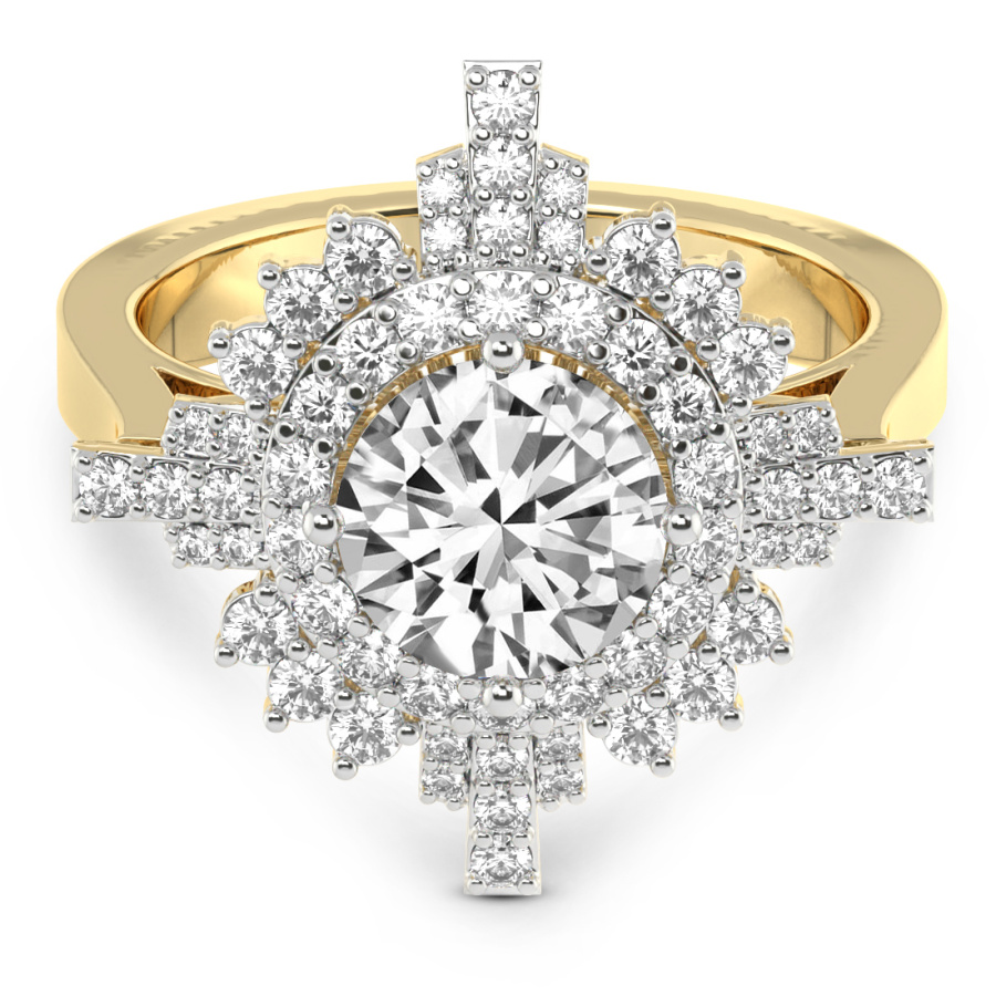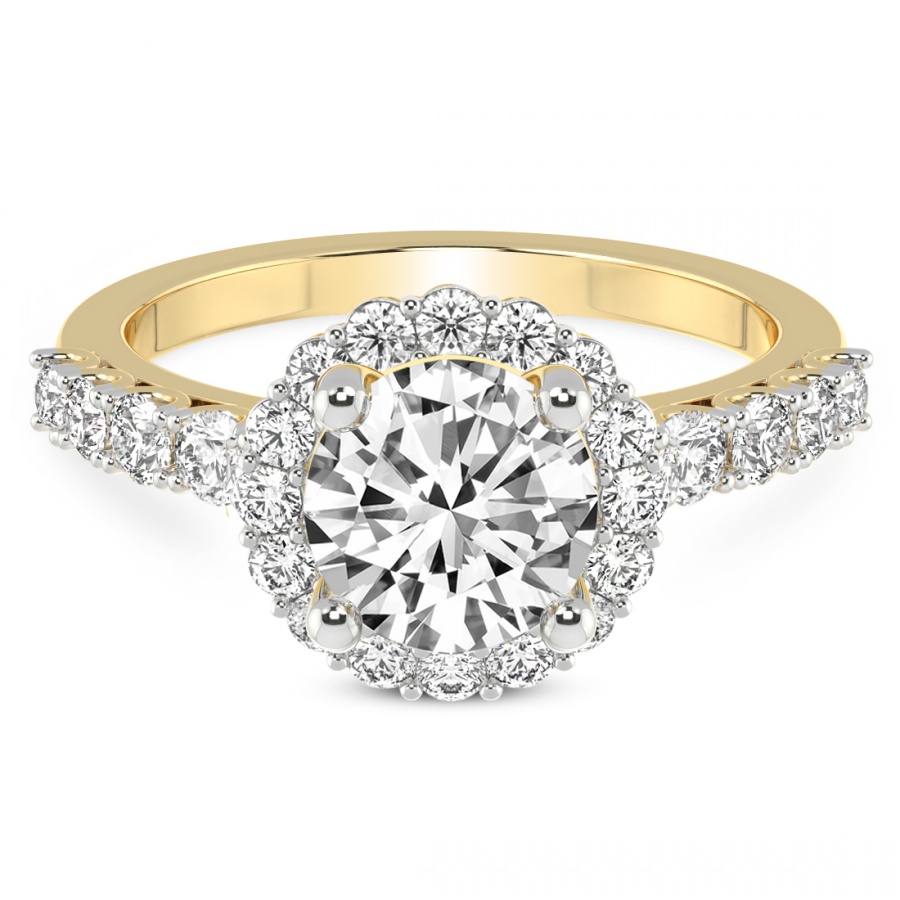 This Imogen Round Halo Diamond Ring is a Round shape ring Engagement type 18k Yellow Gold