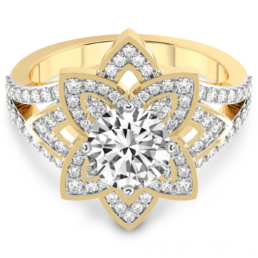 This Felicity Willow Diamond Ring is a Round shape ring Engagement type 18k Yellow Gold