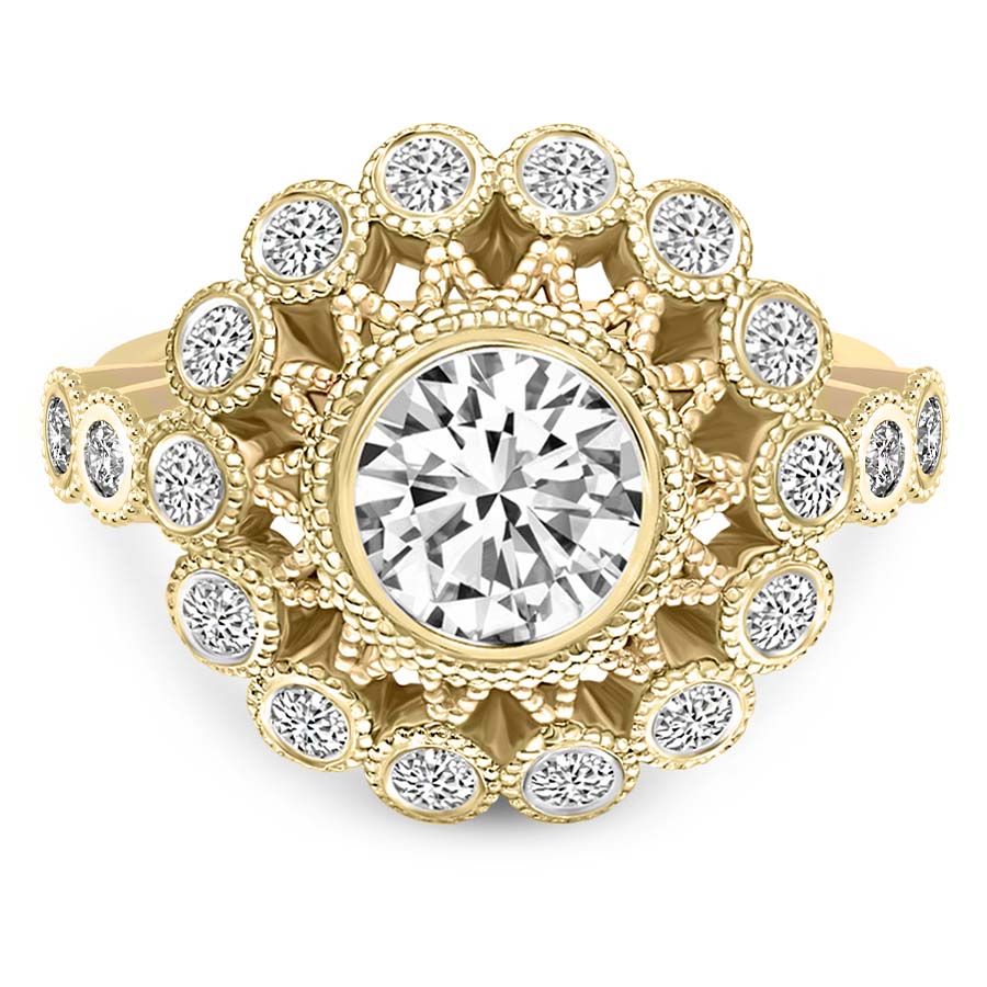 This Tabitha Felicity Bezel Diamond Ring is a Round shape ring Engagement type 18k Yellow Gold